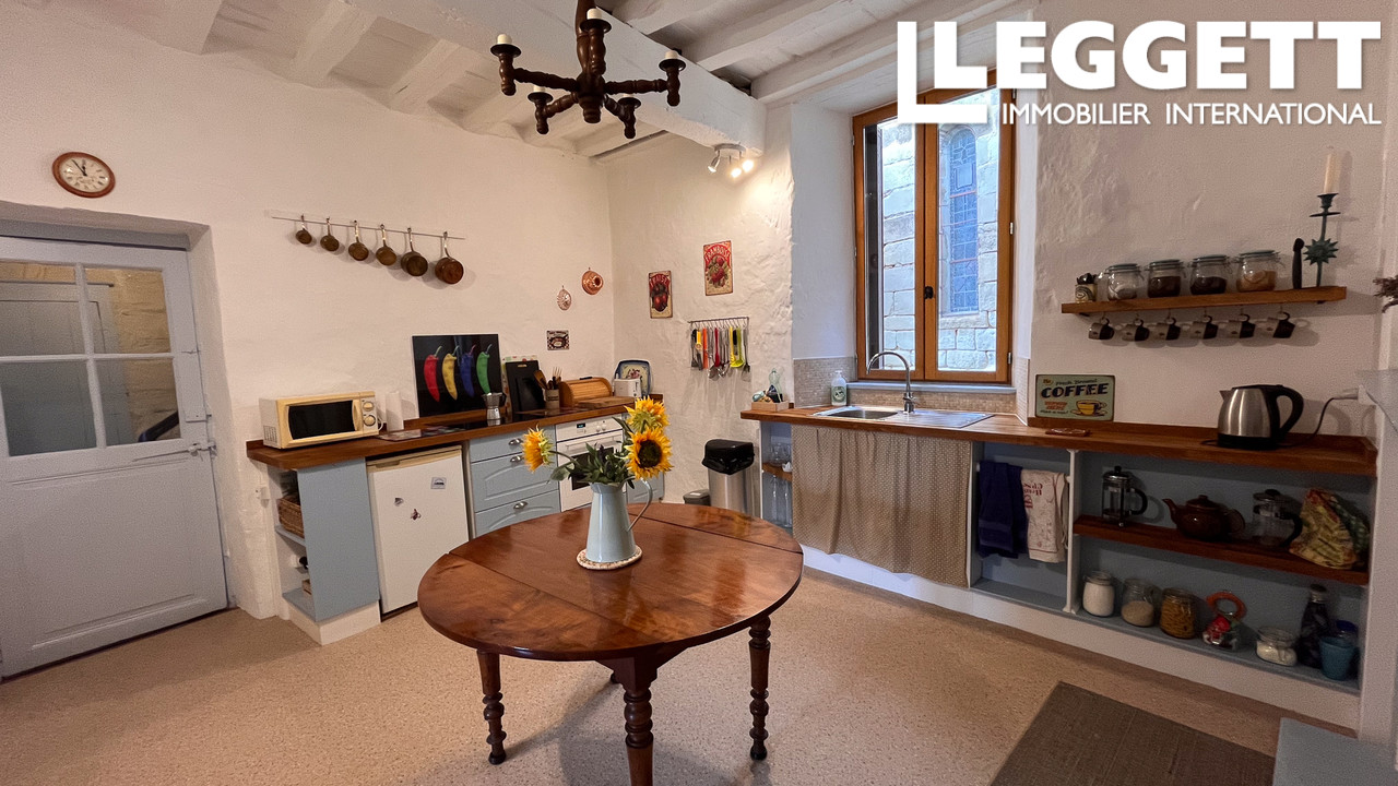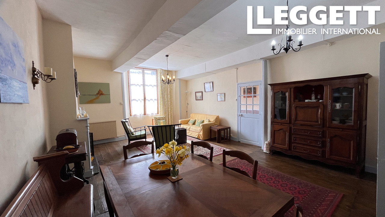 A36050CWN87 - Charmante maison de village de 3 chambres à coucher avec jardin de cour, espaces de vie spacieux et pièce mansardée polyvalente. Les caractéristiques comprennent un couloir lumineux, une cheminée accueillante, un poêle à bois, une cave avec un atelier et une buanderie, ainsi qu'un parking hors route.