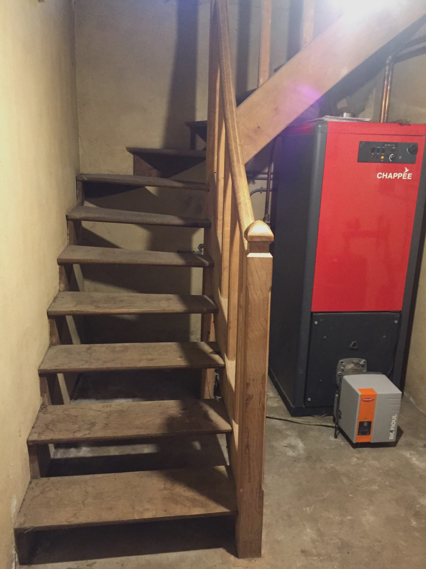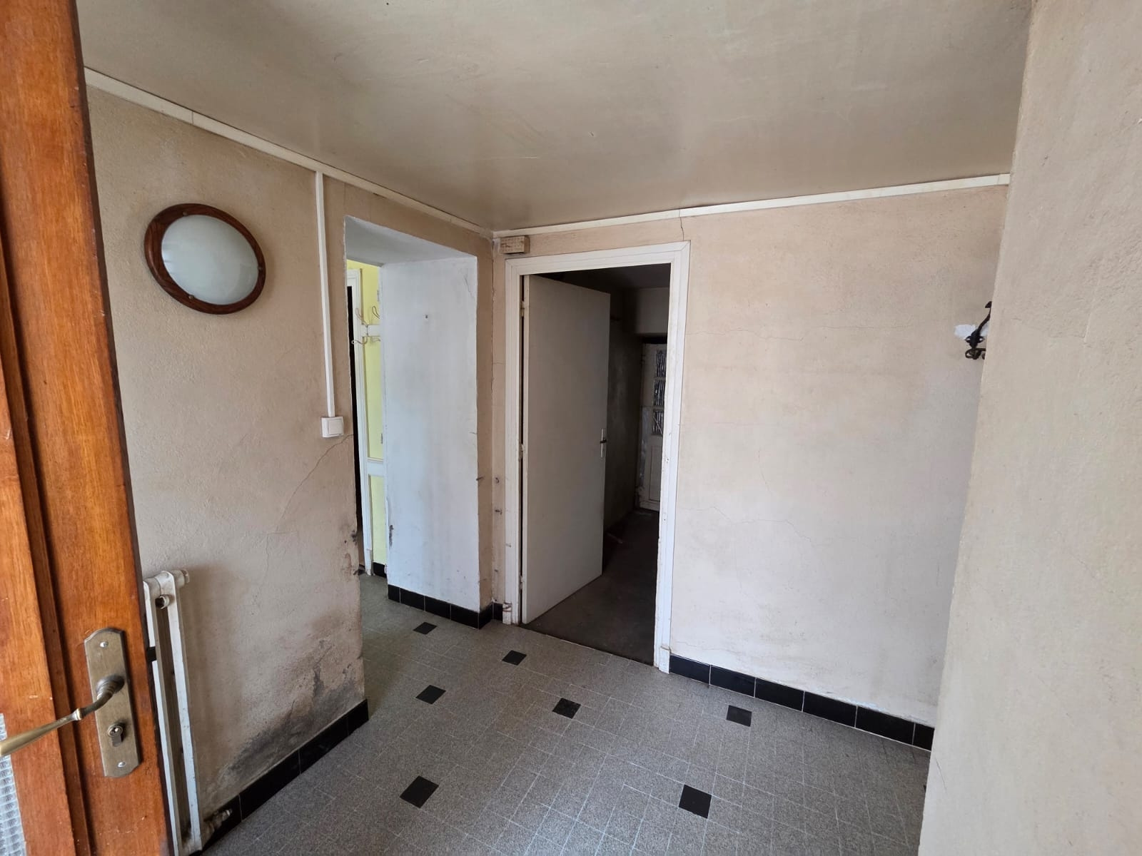 - rez-de-chaussée : une entrée desservant sur la gauche une cuisine fermée, un salon et 2 chambres en enfilade. Sur la droite une salle de bain et des WC séparés. Face à l'entrée une chaufferie avec chaudière et escalier pour accès à l'étage. Egalement accès vers l'arrière de la maison : cave, garage/ atelier et jardin.