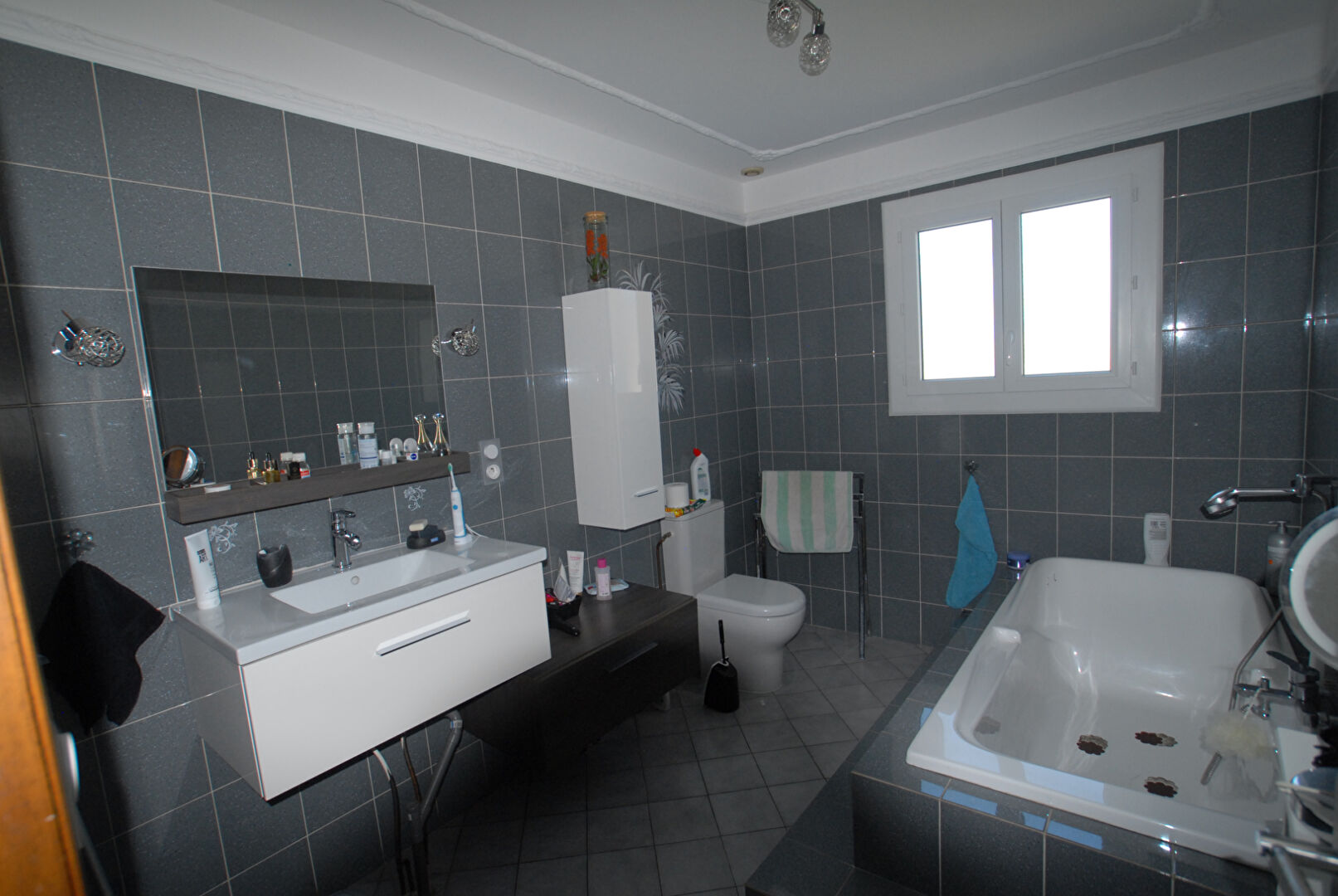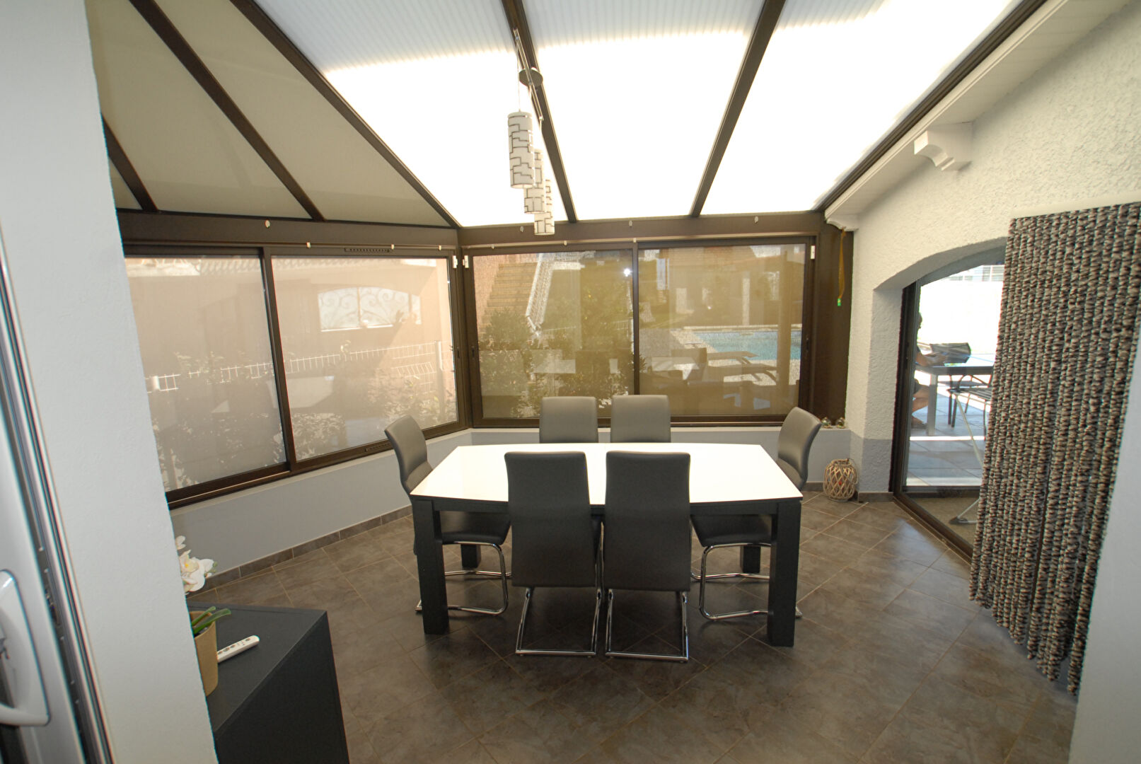 Maison traditionnelle (1990) de 137 m² habitable et édifiée sur une parcelle d'environ 600 m². Elle se compose au rez-de-chaussée, cuisine équipée ouverte sur grand séjour, buanderie, 1 salle d'eau avec douche à l'Italienne et W.C., 1 chambre avec douche, pergola bio-climatique, véranda, cave enterrée, à l'étage 2 chambres (parquet chêne), 1 salle de bains avec W.C. , piscine 7/4 avec pool house, garage, (22 m²) poêle à granule, portail électrique, volets roulants électrique, EDF 1400 /annuelle, taxe foncière 1400 euros, aucuns travaux à prévoir !!!