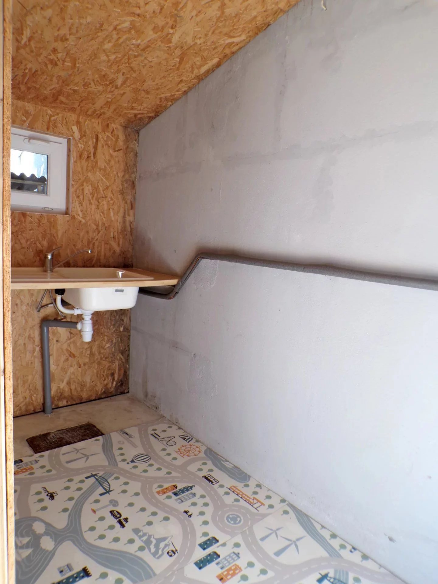 Entrée sur carrelage 60's, séjour, cuisine séparée donnant sur la terrasse, deux chambres sur parquet bois, salle de bains, wc, débarras, grande cave et buanderie.