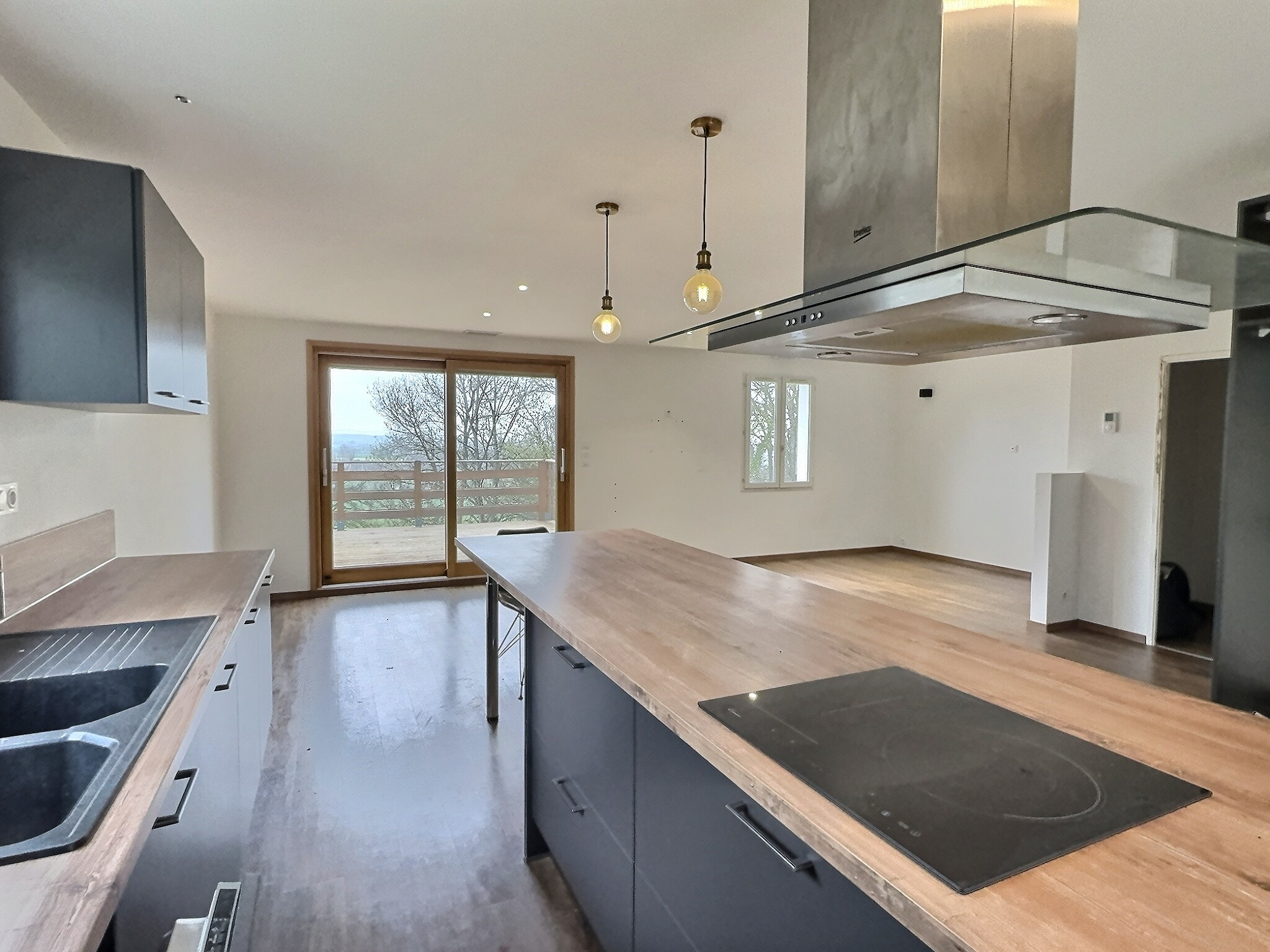 Cette Maison à vendre rénovée, est composée d'une grande pièce de vie donnant sur une terrasse en bois procurant avec une superbe vue sur la campagne, cuisine US aménagée et équipée, de 5 chambres et deux salles d'eau.