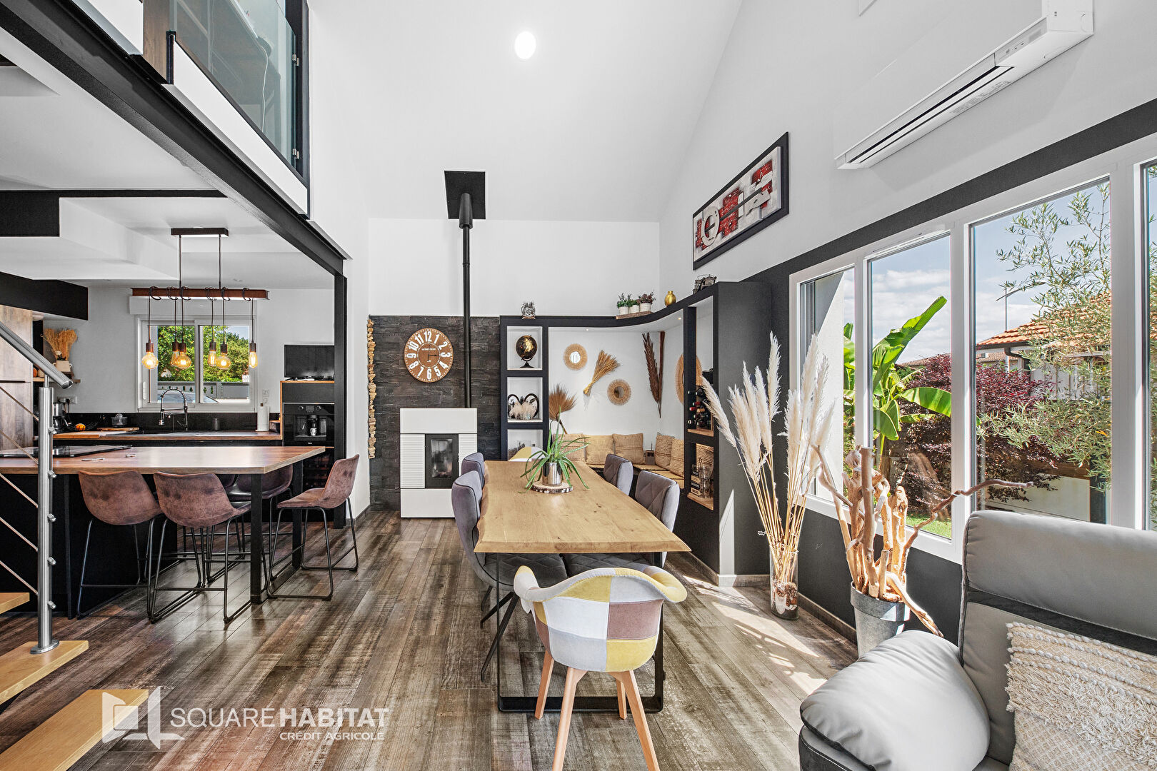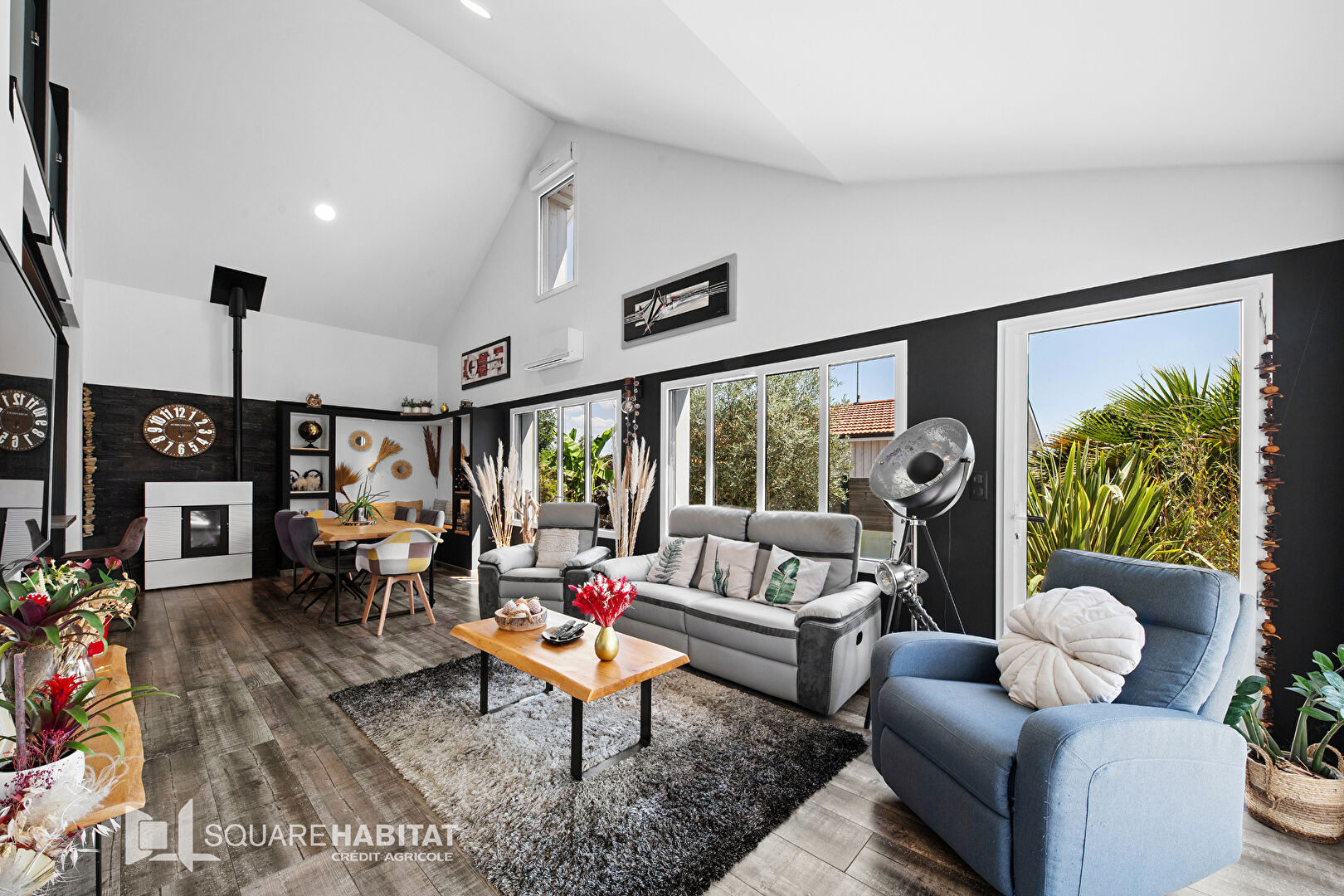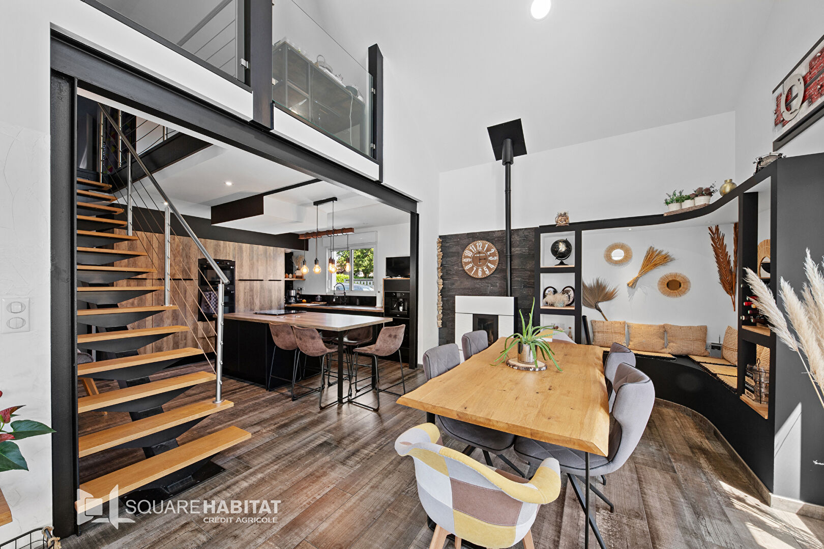 Dès l'entrée vous découvrirez un séjour lumineux avec une grande hauteur sous plafond, sublimé par un poêle à granulés et une climatisation réversible pour un confort optimal toute l'année.