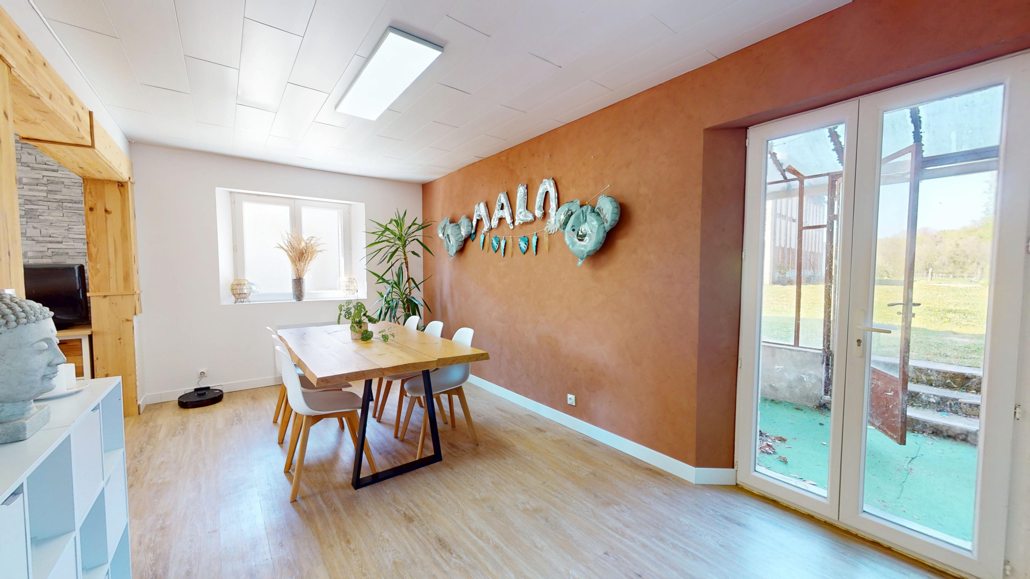 Fenêtres double vitrage PVC, radiateurs électriques.