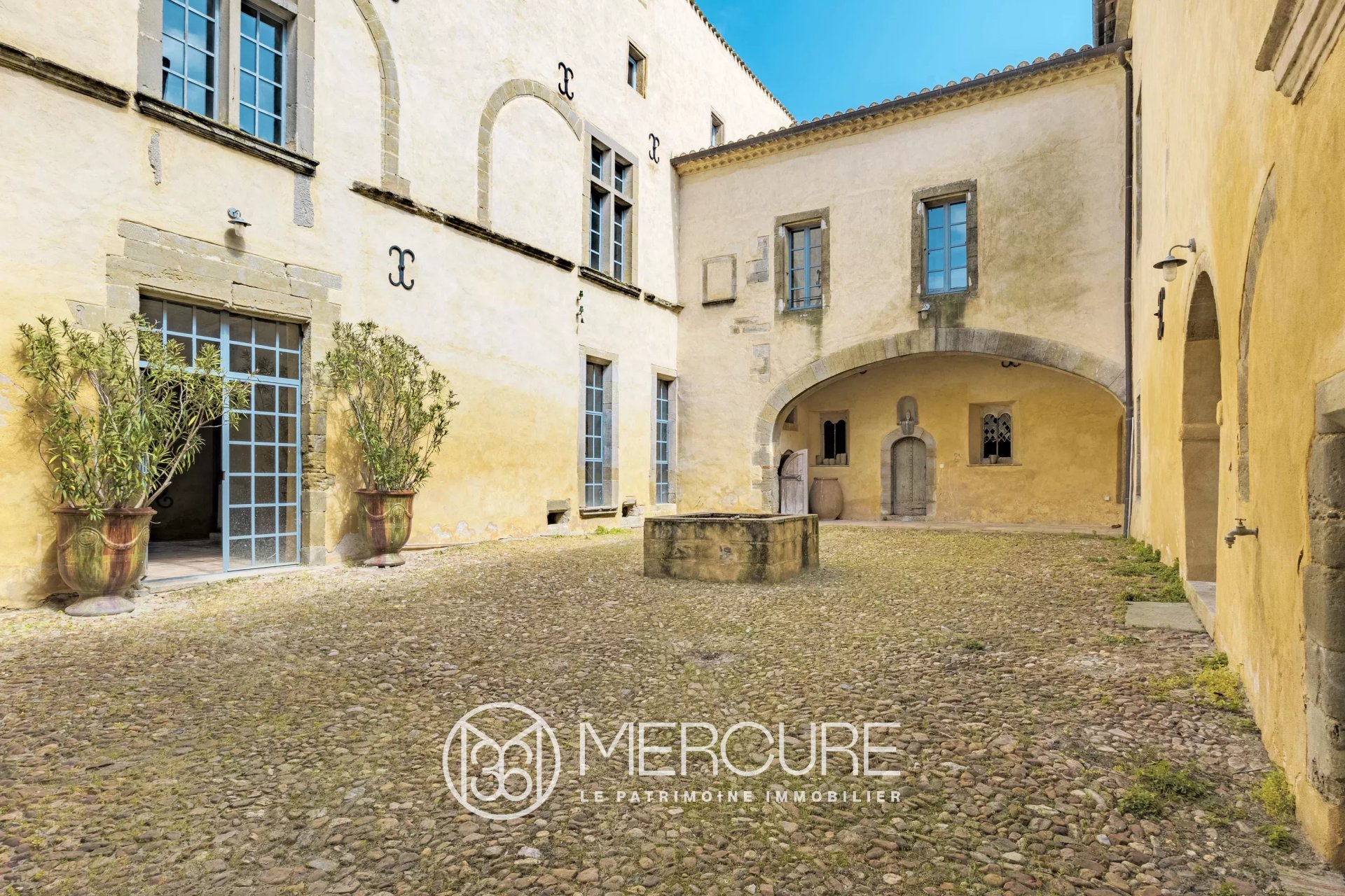 Au rez de chaussée, une cuisine médiévale avec une grande cheminée en pierre ouvre sur une cour intérieure avec un puits central, qui mène à une cave et à une chapelle.