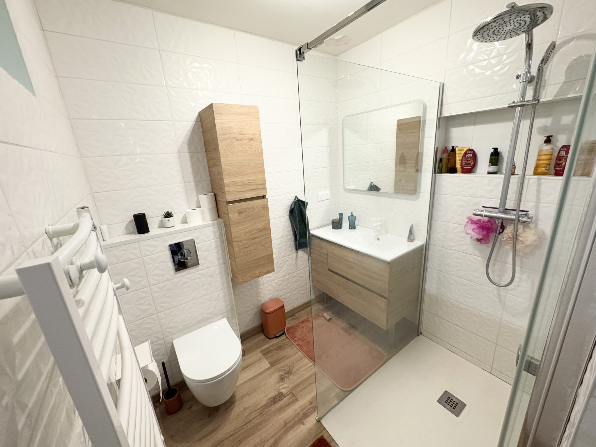 Elle se compose d'un hall d'entrée, une cuisine équipée ouverte sur une grande pièce de vie lumineuse, offrant un espace agréable pour recevoir et se détendre avec accès au balcon, salle d'eau, 3 chambres, dont une suite parentale avec salle d'eau privative.