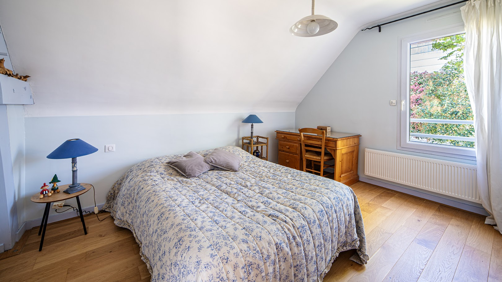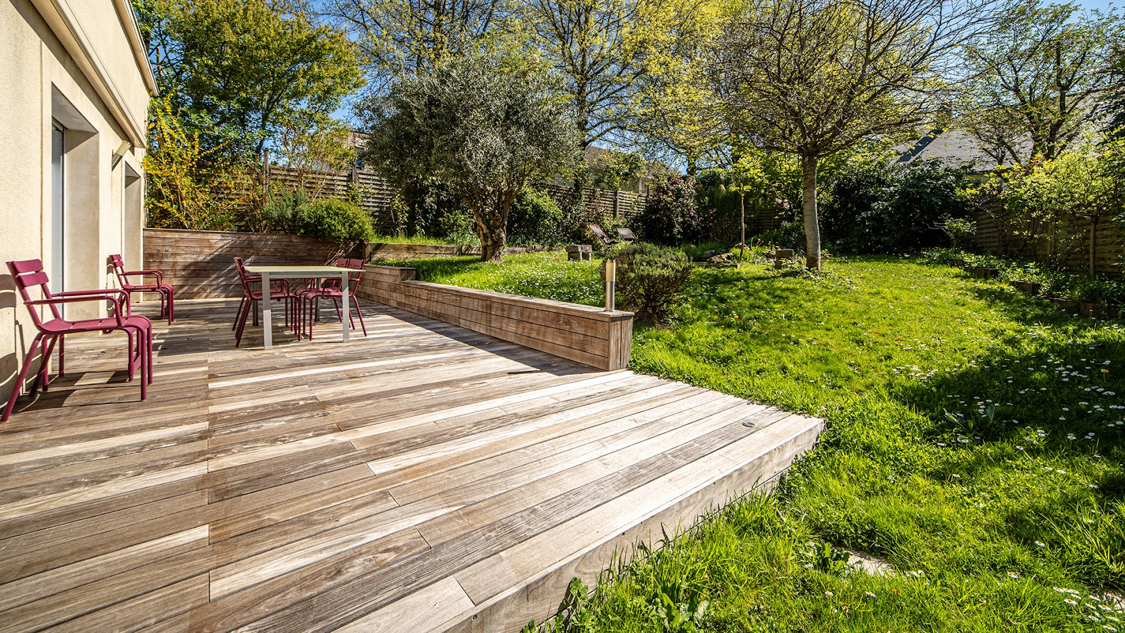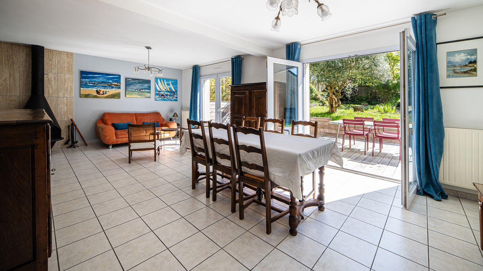 Nantes - Jonelière : Parfaitement située à deux pas des promenades des bords de l'Erdre et de toutes commodités, cette superbe maison familiale édifiée en 1995 et qui a profitée d'une extension en 2011, séduit par ses volumes généreux, sa luminosité et son jardin arboré à l'abri des regards.