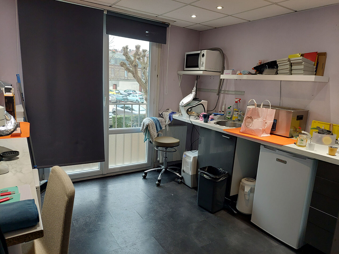 Un espace accueil client, 3 bureaux, une cuisine équipée et deux WC