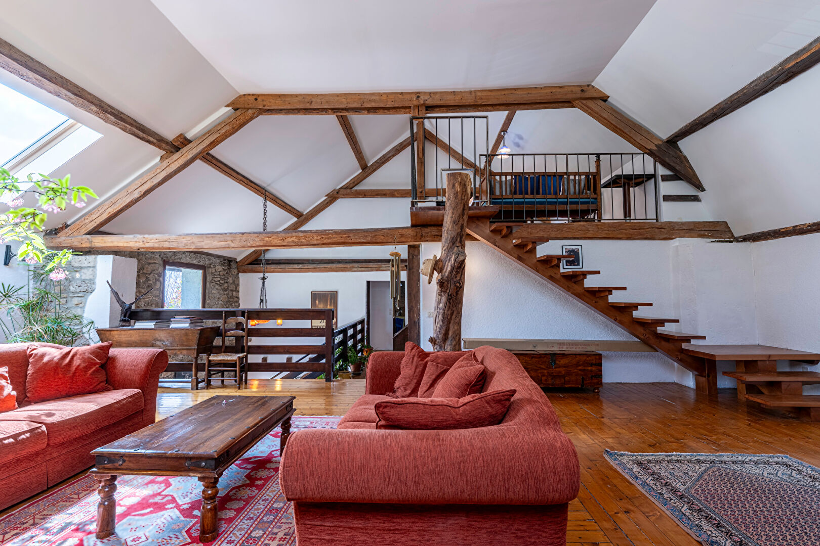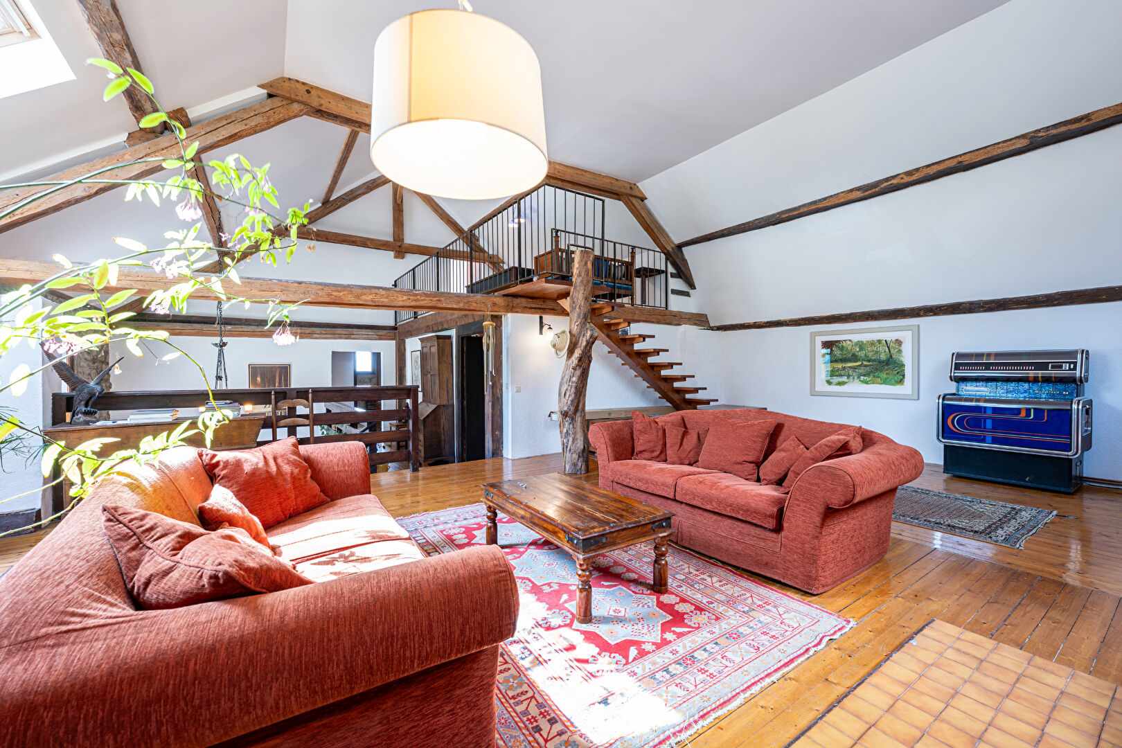 À l'étage supérieur, une charmante mezzanine aménagée en espace billard surplombe le séjour et dessert une chambre supplémentaire, offrant une ambiance chaleureuse et ludique.
