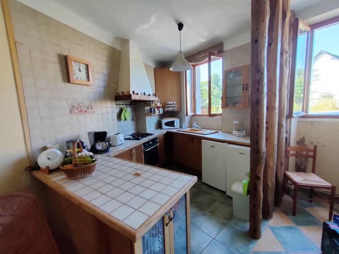 A la recherche d'une maison habitable de suite et au calme ? Celle-ci est le compromis idéal ! Ancien hôtel au coeur d'un tout petit village comprenant une grande pièce de vie avec cheminée et coin cuisine américaine équipée et aménagée, 1 salle d'eau et 1 wc en RDC, elle propose 2 chambres et 1 sde au 1er étage, et 2 autres chambres au 2nd ; combles aménageables au-dessus. Chauffage central (chaudière électrique). Terrain non attenant de 680 m² environ. avec vue imprenable sur les Monts d'Auvergne.