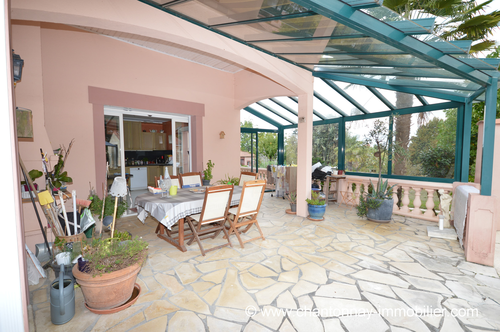 Rare ! A CHANTONNAY. Très belle propriété dans quartier calme et prisé, proche centre ville. Prestations et matériaux de qualité pour cette maison contemporaine lumineuse et confortable, offrant de beaux volumes. Elle est composée au rez-de-chaussée, d'un grand hall d'entrée, d'un salon-séjour d'env. 52m2, d'une cuisine aménagée et équipée, de trois chambres avec salles d'eau privatives, 2 wc, une lingerie et un garage. Au sous-sol : Deuxième garage, cellier et cave. Un vaste garage pour camping-car avec sanitaire et point d'eau (possibilité logement annexe). Un pool-house (pièce de vie annexe) avec SDE et wc, idéal pour logement type studio. Un vaste garage-atelier + local technique piscine. Une très belle piscine couverte. Un abris de jardin. 2 terrasses dont une semi-fermée. Un très agréable terrain paysagé entièrement clos et sans vis-à-vis agrémenté d'un étang, le tout sur environ 6 500m2.