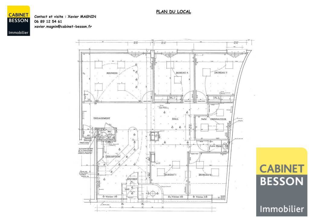 9 mètres de vitrines comprenant un accueil, 4 bureaux, une salle de réunion, local technique, wc.