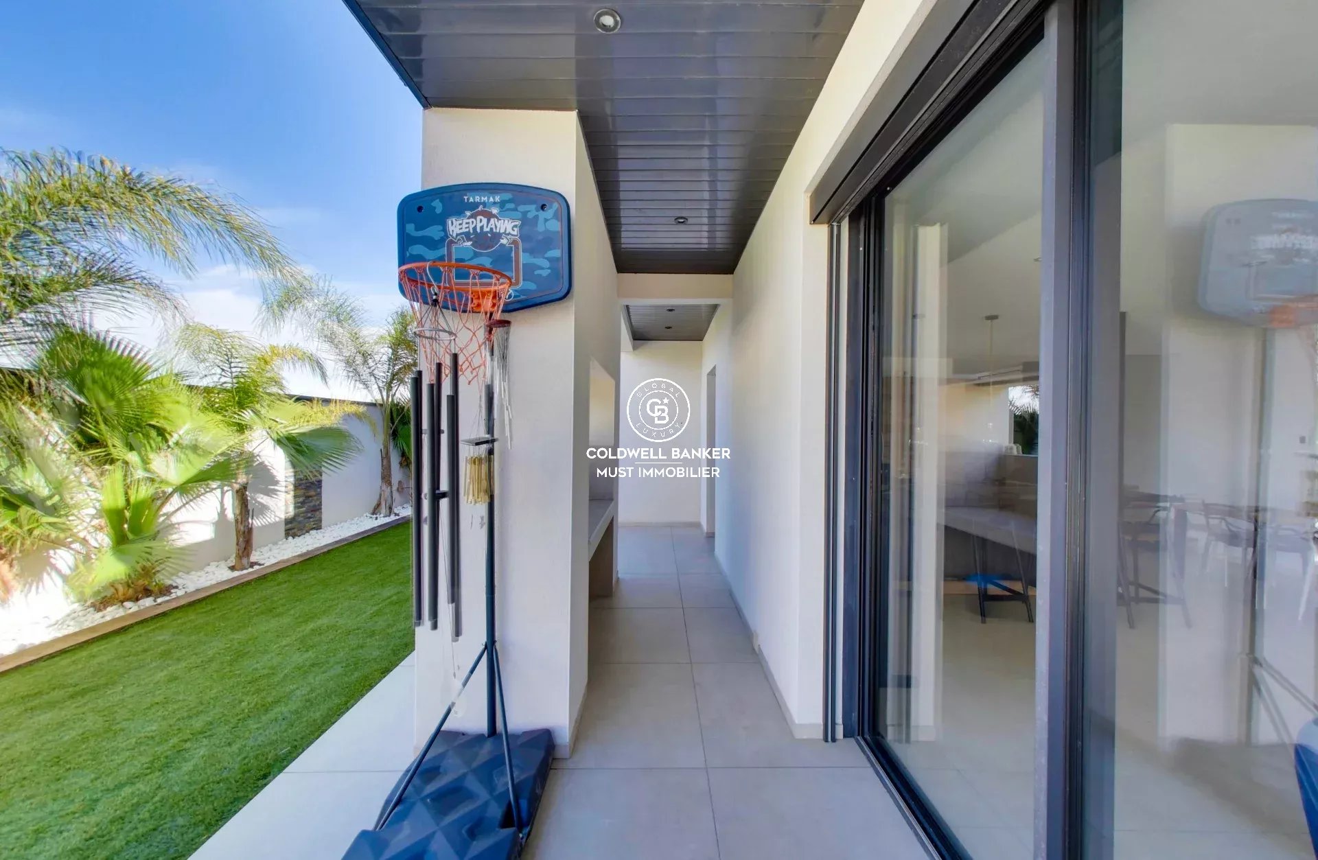 La villa est composée d'un grand hall d'entrée, d'un toilette, d'une vaste pièce de vie vitrée avec cuisine équipée, donnant sur une grande terrasse bioclimatique et sur une seconde terrasse avec BBQ.