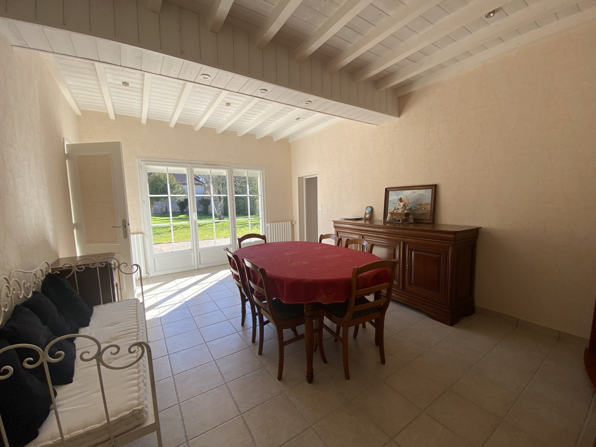 Elle se compose au rez-de-chaussée d'une entrée sur cuisine équipée, d'un salon avec cheminée, d'une salle à manger lumineuse avec accès à la terrasse, d'une salle de bains, de WC séparés et d'une chambre avec placards intégrés.