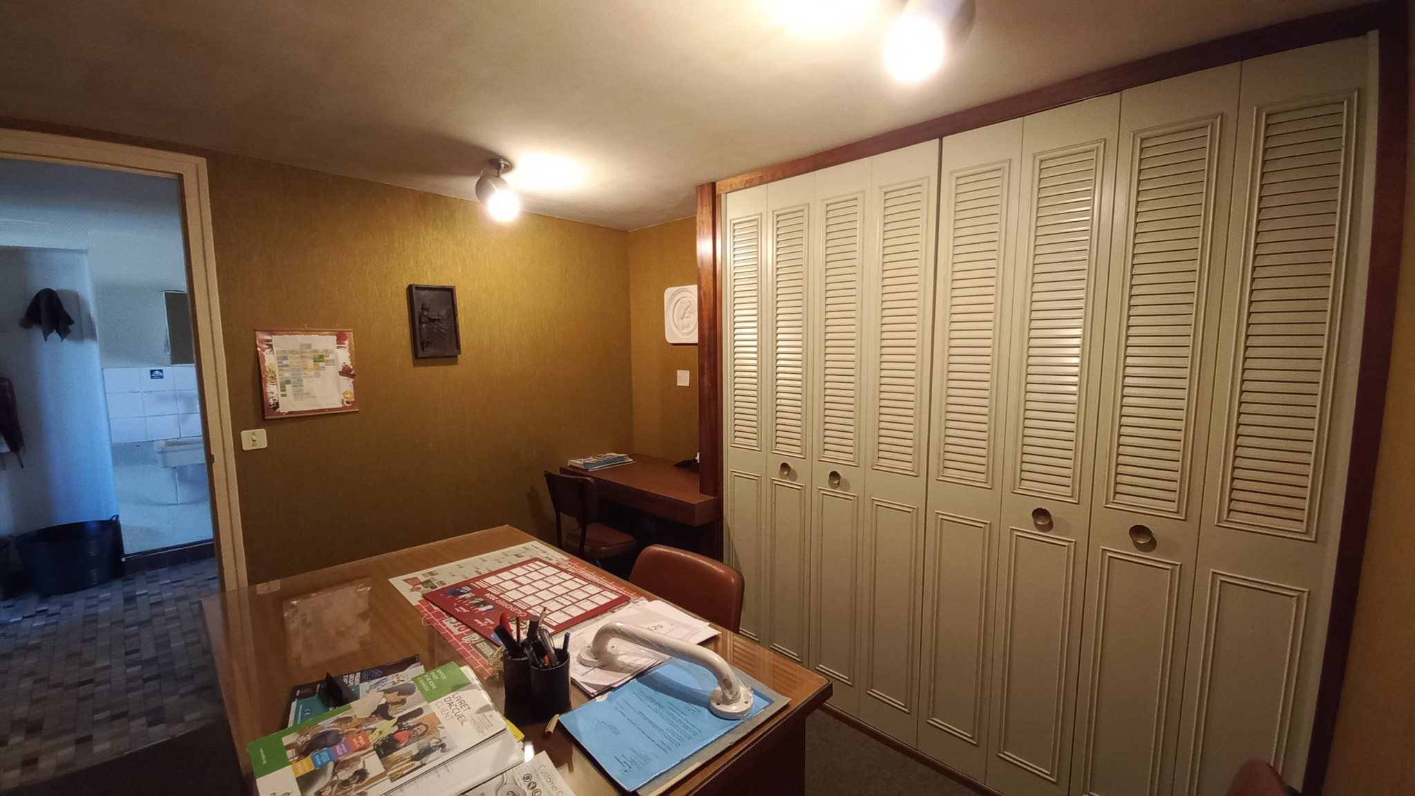 Elle se compose d'une entrée, d'un salon séjour lumineux (exposé Est et Sud) agrémenté d'une cheminée, d'une grande cuisine aménagée, équipée et séparée, d'un wc séparé, d'un bureau (ou chambre) et d'un grand atelier.