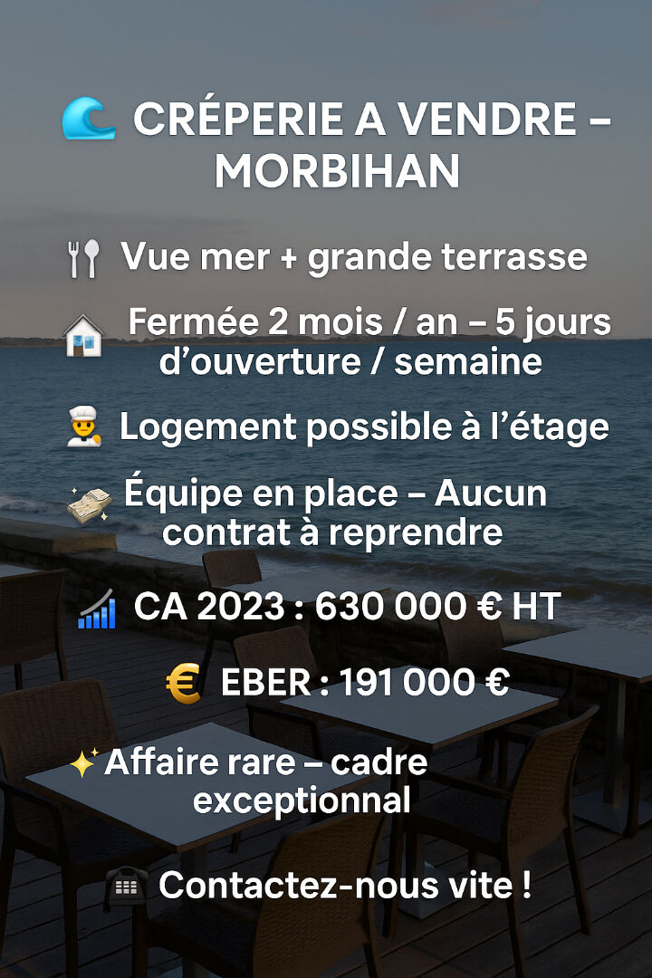 // À vendre : Crêperie clé en main avec vue mer / Morbihan //