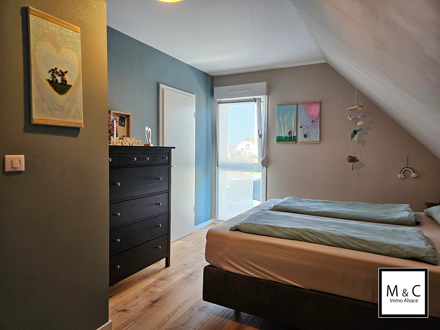 La maison dispose d'une pompe à chaleur air/eau avec chauffage au sol sur les deux niveaux.