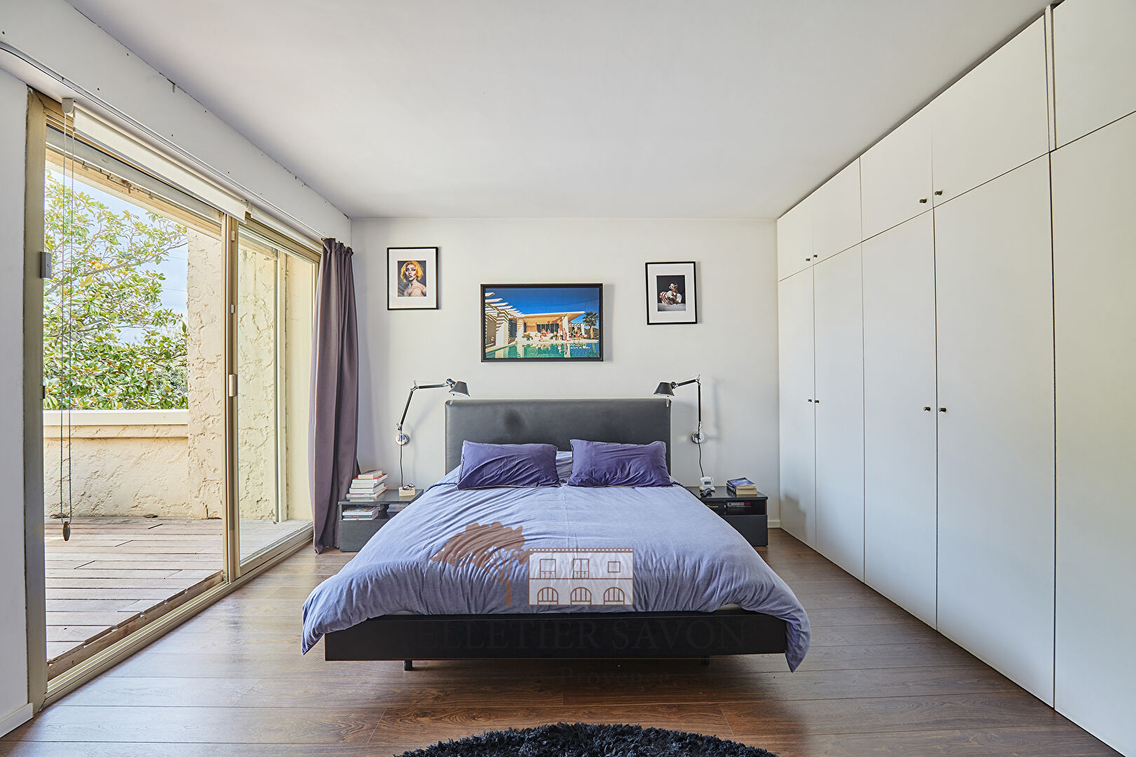 À l'étage, vous découvrirez trois belles chambres, dont une chambre originale avec lit cube et dressing central sur axe, création de la designer Mélanie Fleury. Une salle d'eau moderne ainsi qu'une superbe suite parentale avec dressing, terrasse privative et salle de bains en marbre rose du Portugal complètent l'espace nuit.