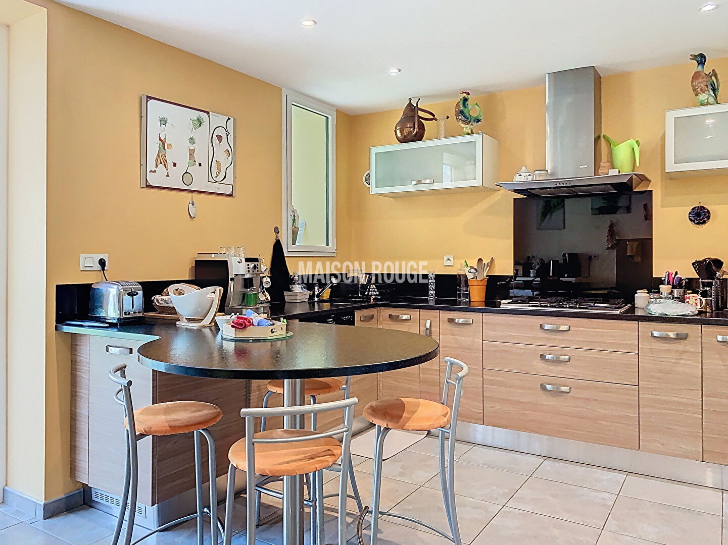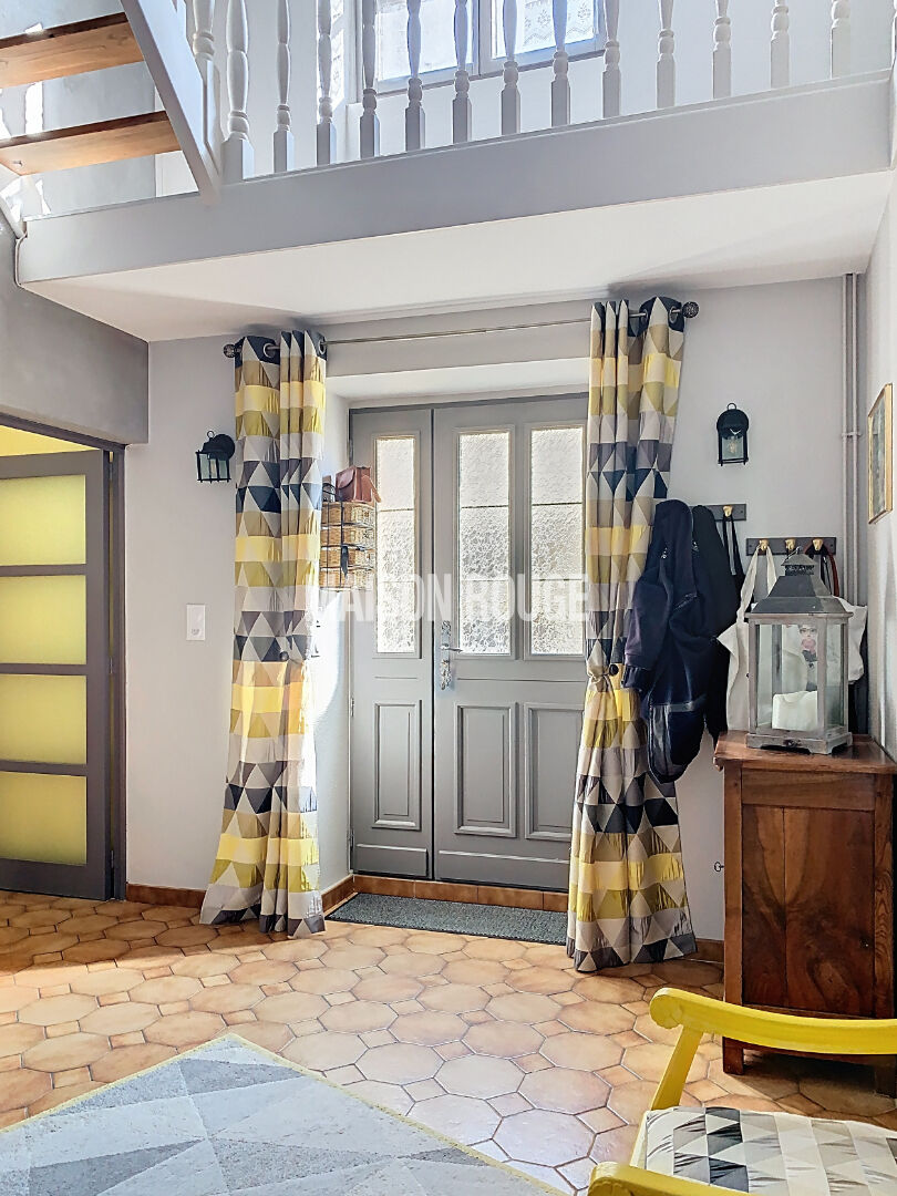 Une belle entrée cathédrale, un grand salon avec un insert bois donnant accès à une agréable terrasse, une salle à manger avec insert bois, une cuisine équipée aménagée, une grande véranda et une salle d'eau avec wc indépendant.