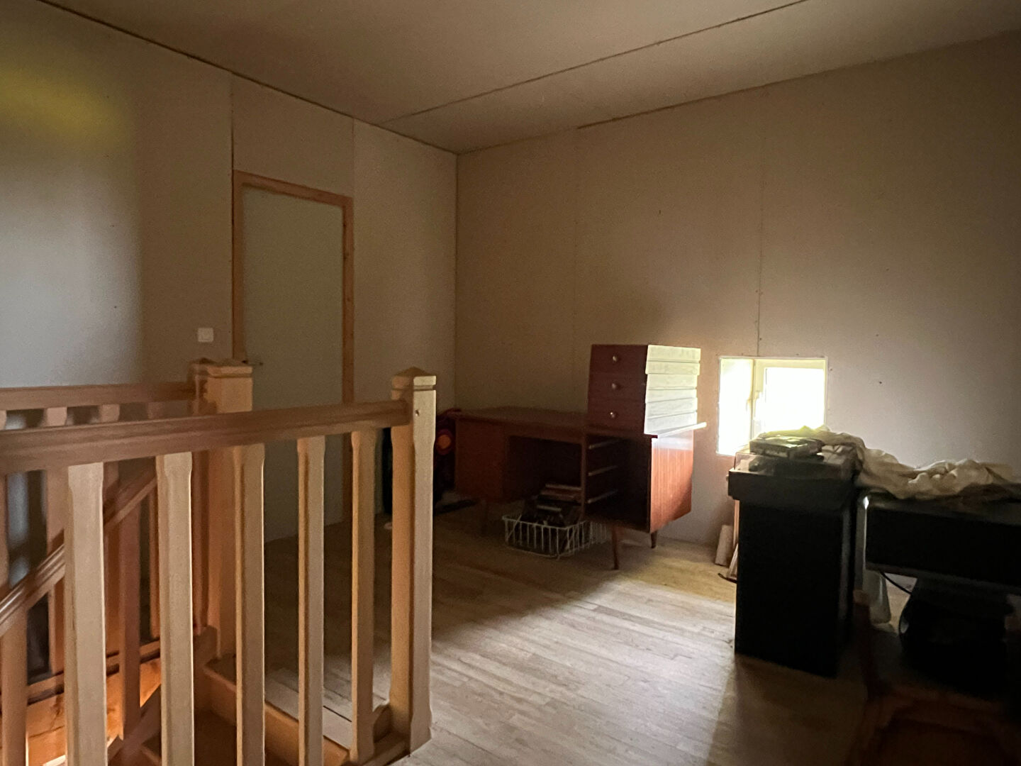 Elle comprend une cuisine aménagée, séjour, chambre avec salle d'eau, WC au rez-de-chaussée ; deux chambres, salle d'eau, WC à l'étage à finir de décorer.