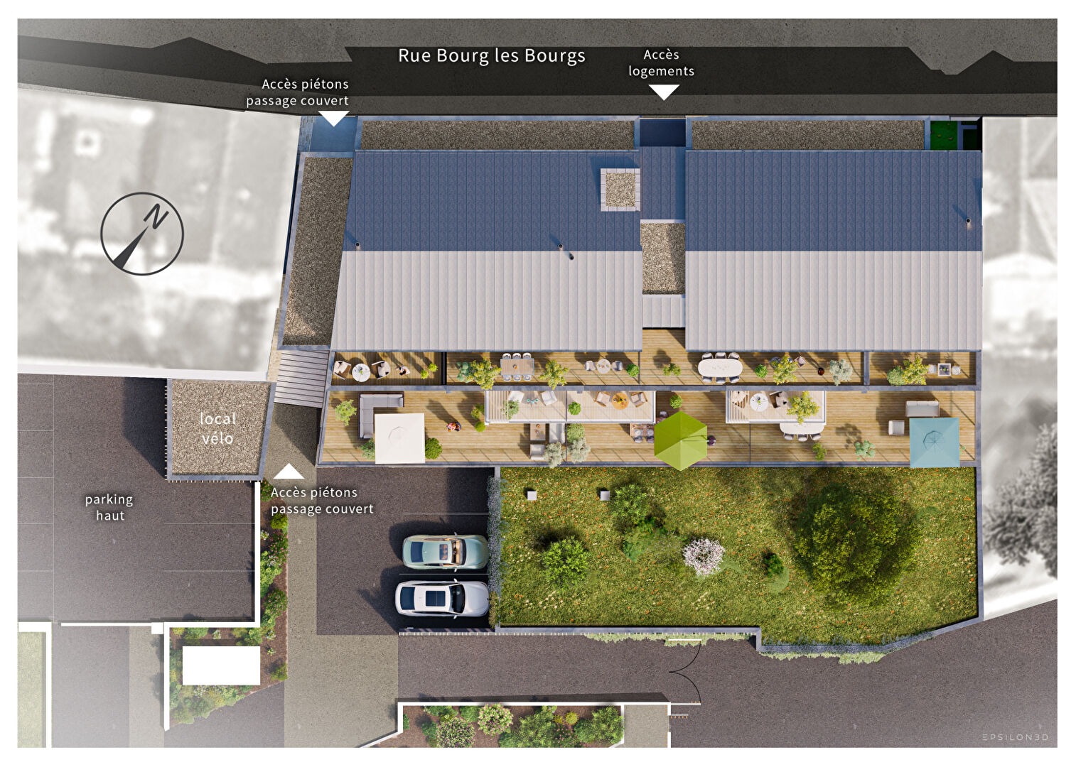 EN EXCLUSIVITÉ - Le nouveau programme immobilier « Bourg Les Bourgs » est situé en centre-ville de Quimper, à quelques minutes à pieds des halles, des commerces et de la cathédrale. Cette résidence de standing d'architecture moderne est composée de 19 appartements neufs, du 2 au 4 pièces avec stationnements privatifs , caves en sous-sol. Parfaitement orienté au Sud, dominant le coeur d'îlot végétalisé - Livraison fin 2026. - T3 de 64 m² avec grande terrasse de 38 m² exposé Sud, pièce de vie de 27 m² , 2 chambres avec placards aménagés, salle d'eau avec douche "style italienne", garage et frais de notaire réduits en sus.