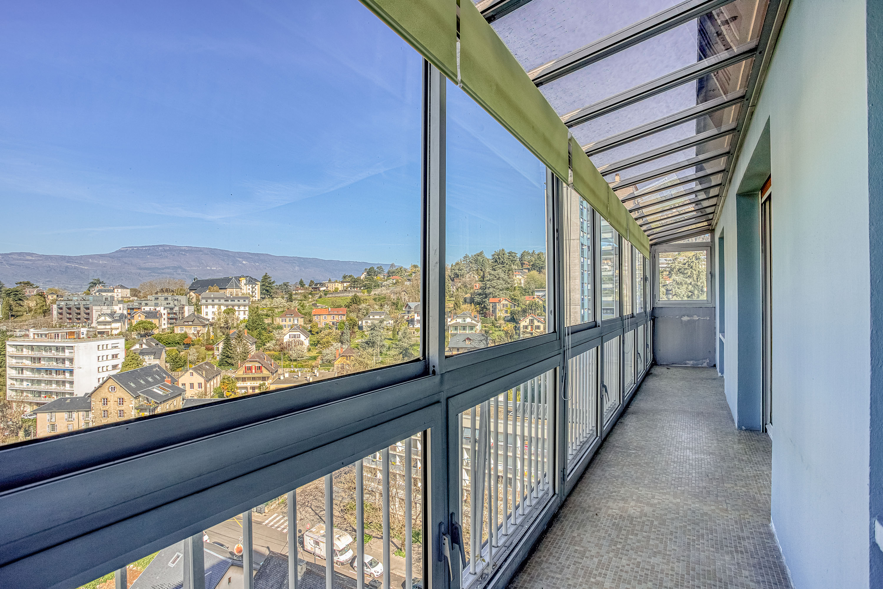 Un balcon transformé en loggia offre un espace supplémentaire agréable en toute saison.