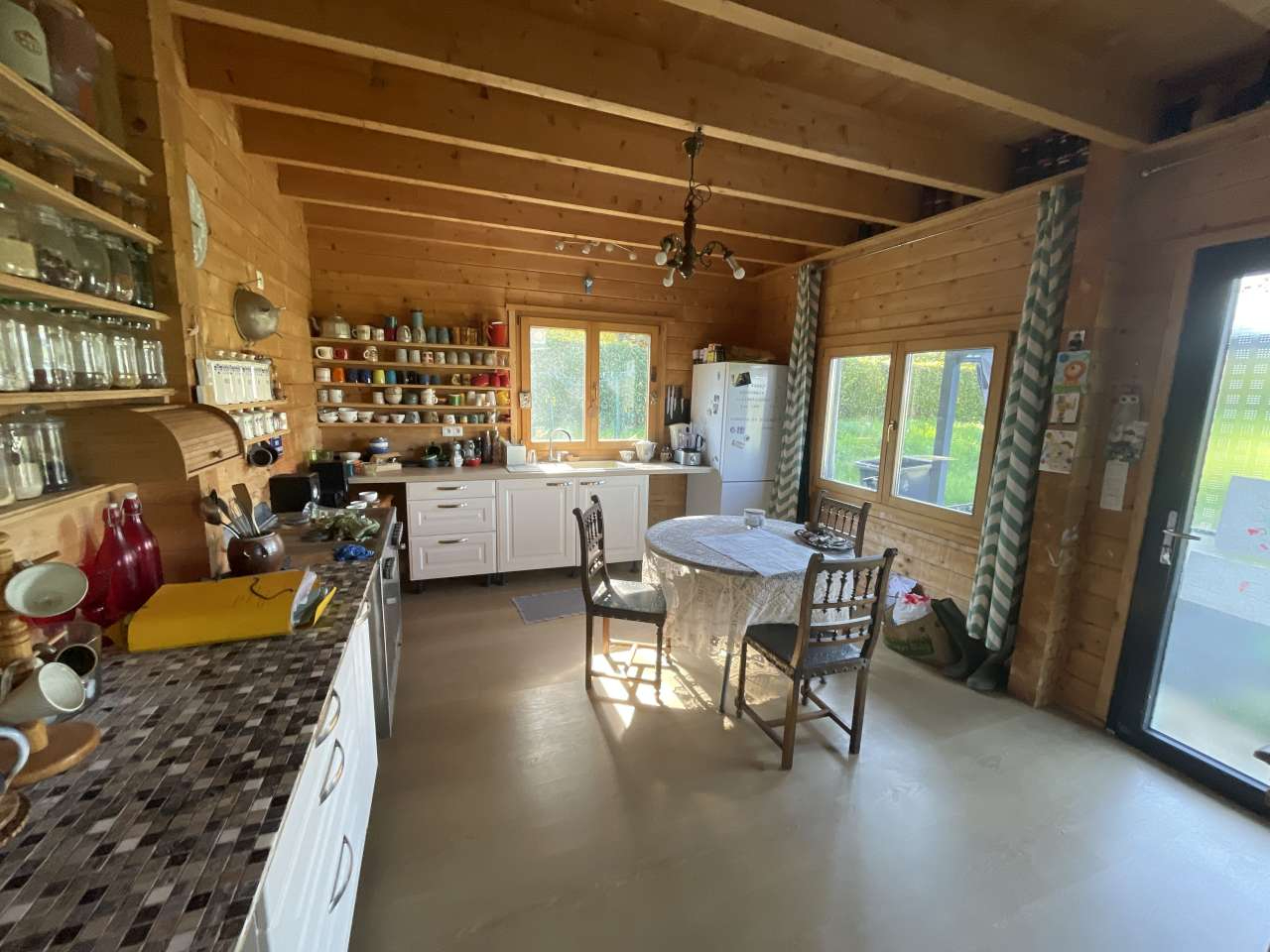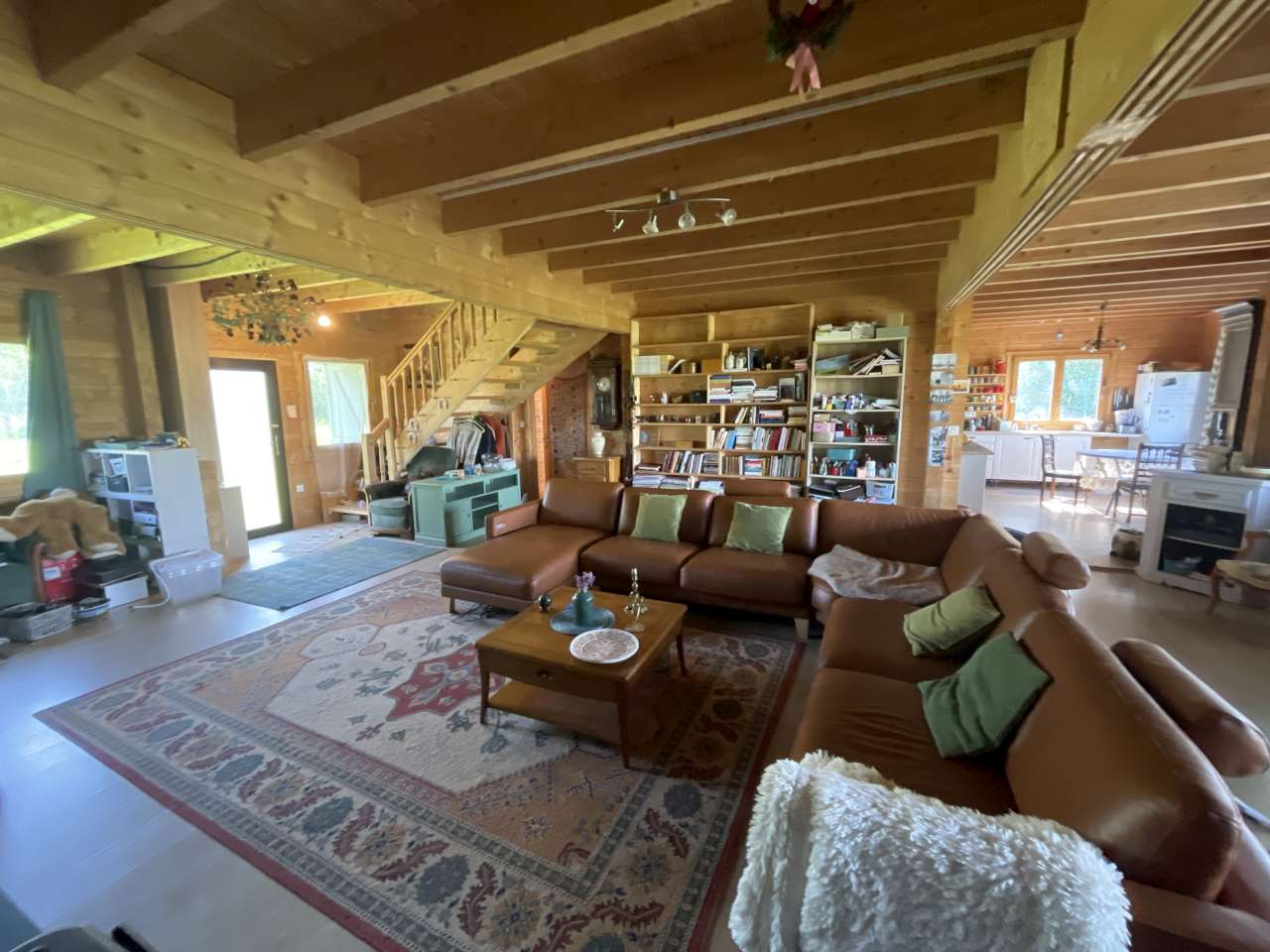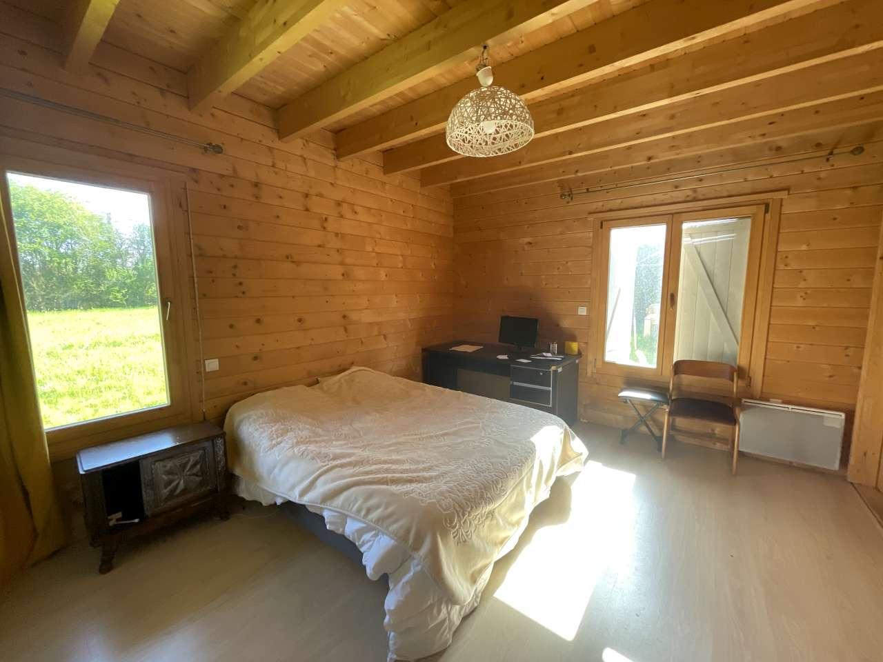 A 3 kms de tous commerces, maison en ossature bois de 2012 comprenant, une cuisine, salon -séjour avec poêle à bois et lumière traversante, deux chambres avec salle d'eau WC, un suite parentale avec douche et WC, à l'étage palier et deux pièces à terminer.