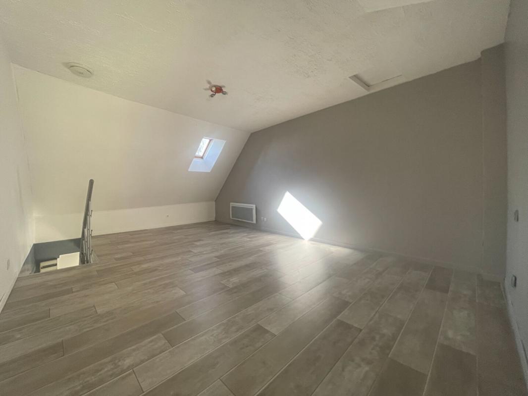 Au rez-de-chaussée, la maison propose un séjour de 22 m2 avec coin cuisine aménagée et dotée d'un comptoir, et une salle d'eau avec WC. Au premier étage, outre l'espace couchage, la grande chambre lumineuse mansardée permet d'organiser un espace bureau.