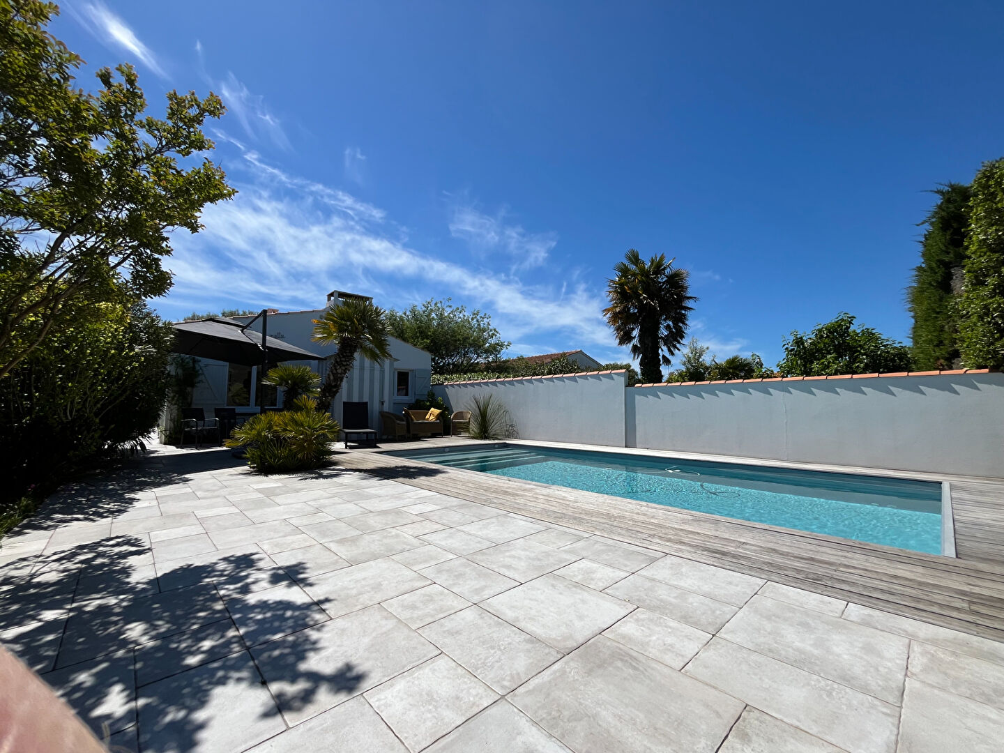 Au coeur du village de La Brée les Bains, à proximité immédiate à pied des commerces et commodités, 200 m. de la plage et 400 m. du marché, MAISON FAMILIALE entièrement rénovée en 2022 (matériaux haut de gamme), sur un terrain clos et paysager de 486 m², d'une surface habitable d'environ 100 m², comprenant: