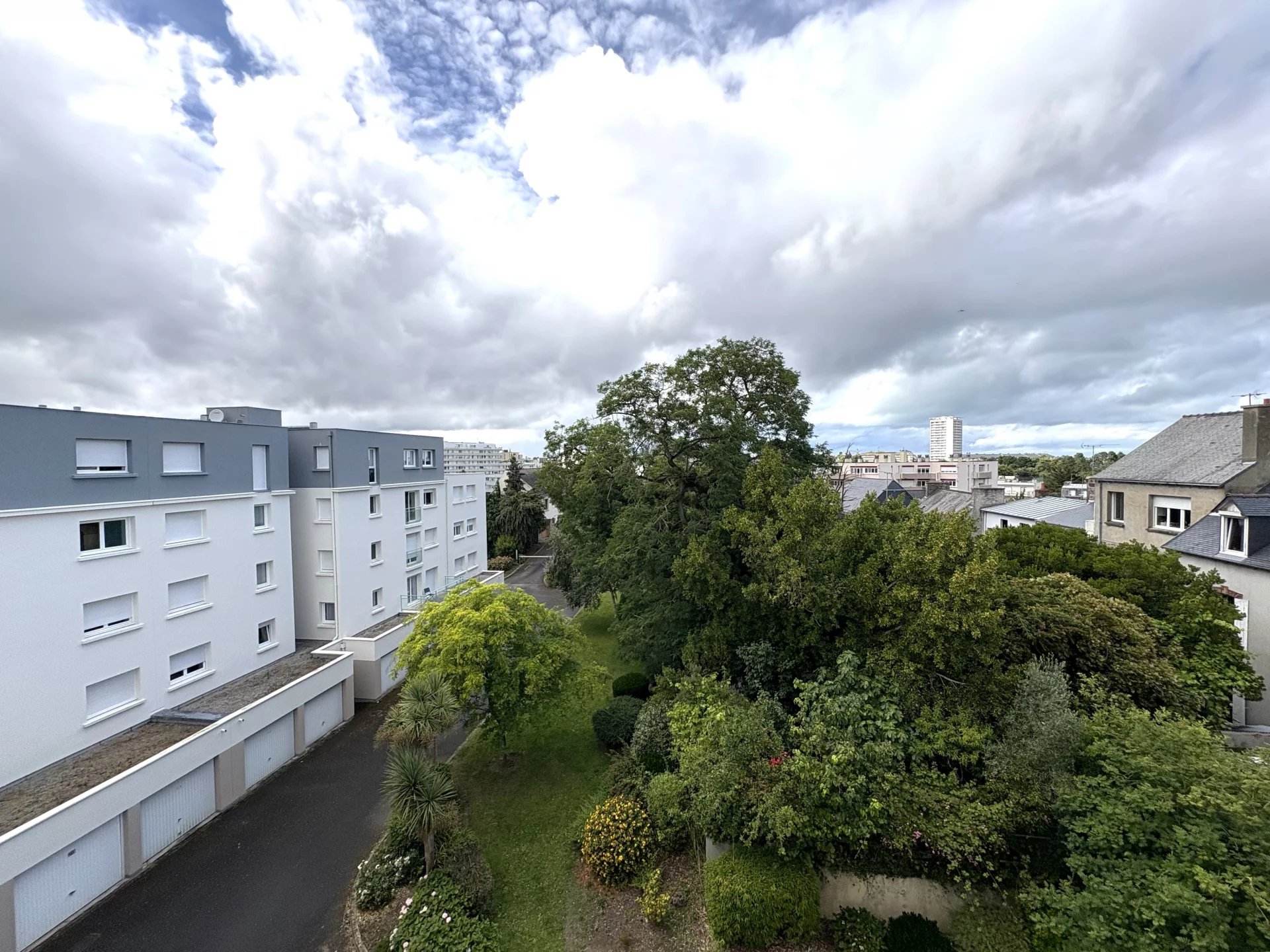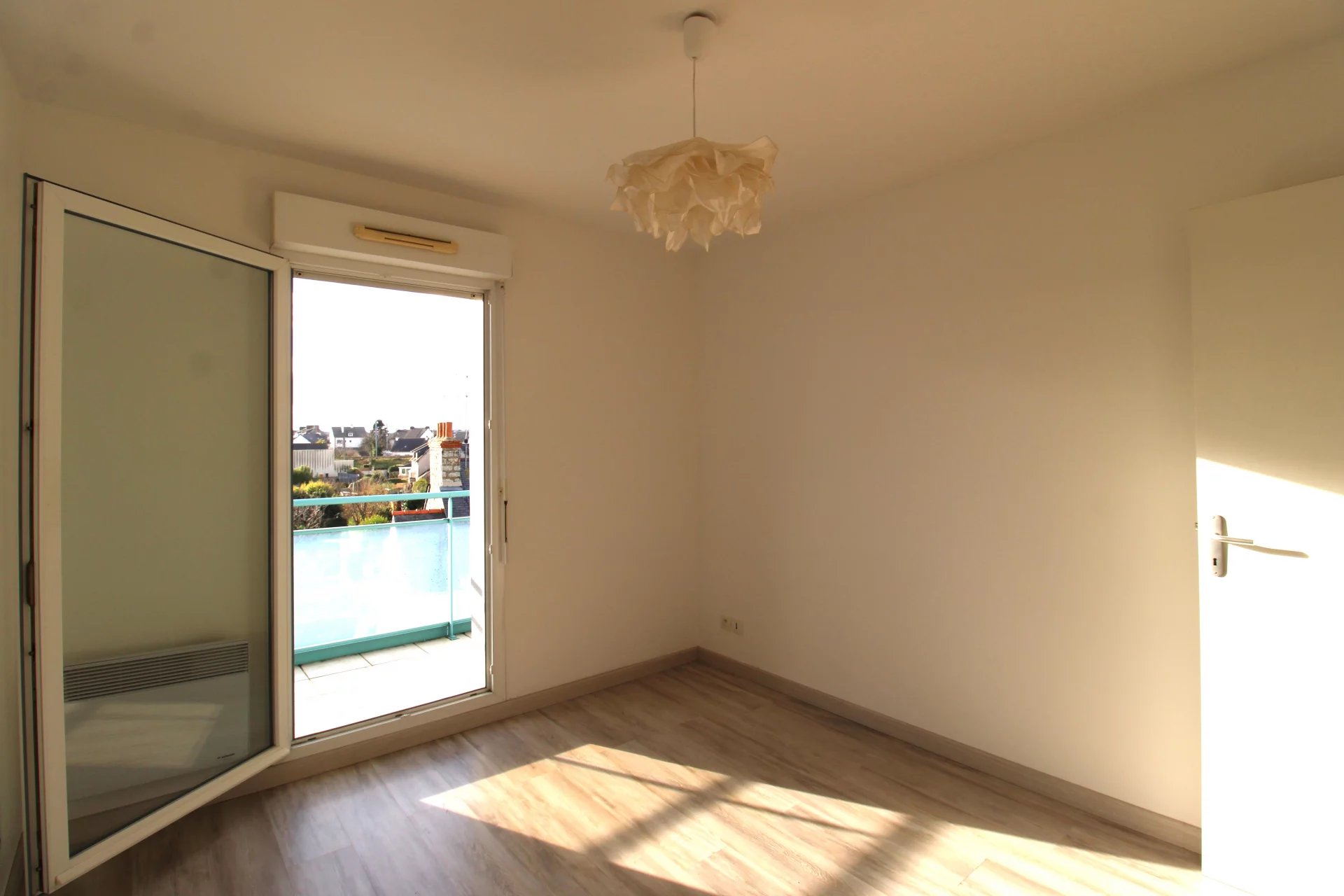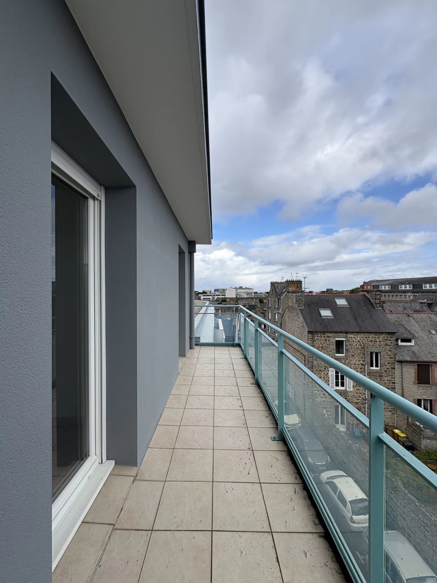 ST BRIEUC, proche centre, dans résidence de 2002 avec ascenseur, appartement 5 P. duplex comprenant : entrée avec placard, séjour salon largement vitré sur balcon - terrasse sud, cuisine équipée, 3 chambres, salle de bains, salle d'eau, W.C. - garage