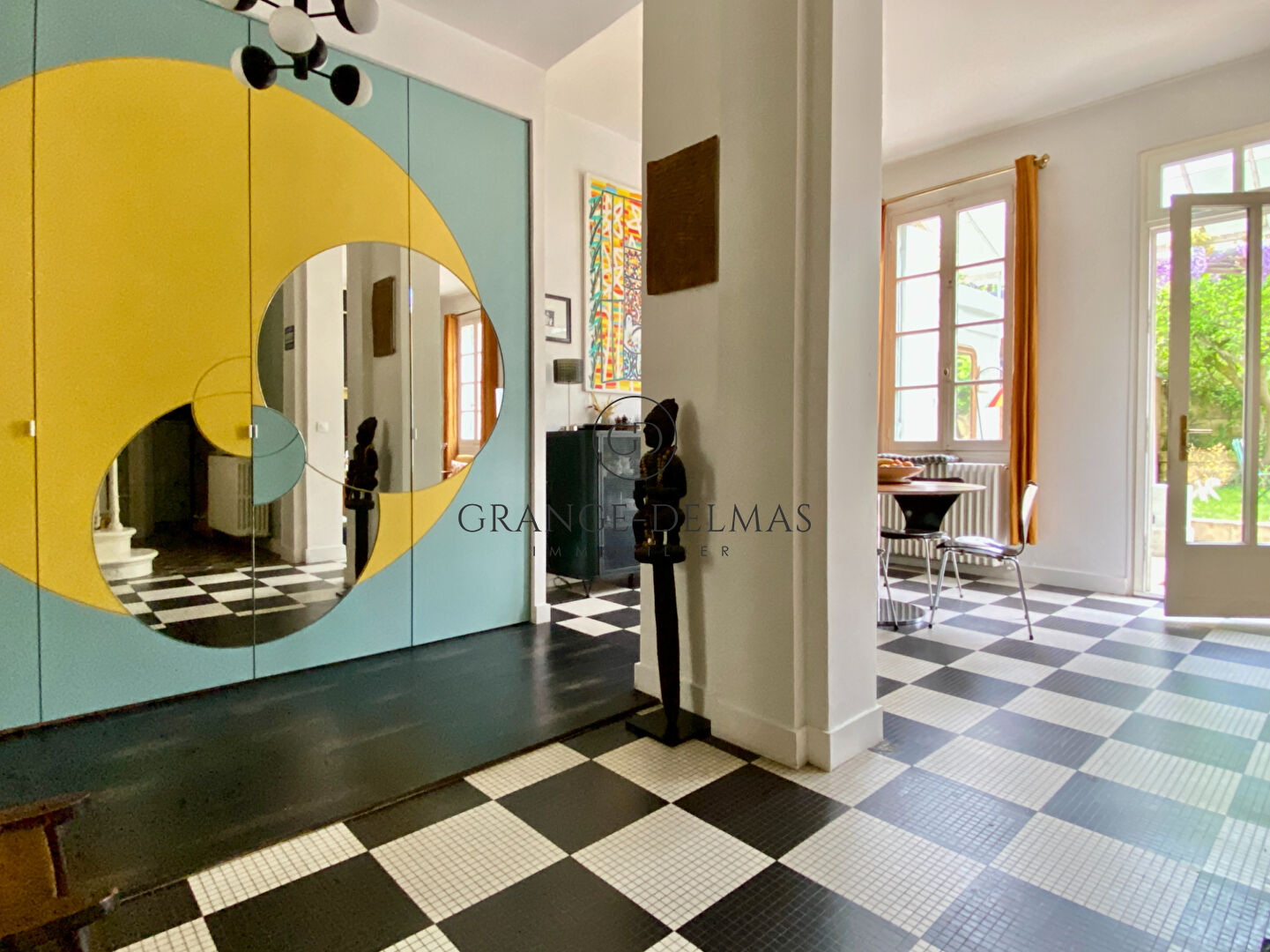 Au rez-de-chaussée, l'entrée centrale distribue une pièce technique pour les vélos côté rue, un bureau, la cuisine indépendante avec cellier et le séjour avec cheminée donnant sur un beau jardin bien exposé avec piscine. Buanderie.