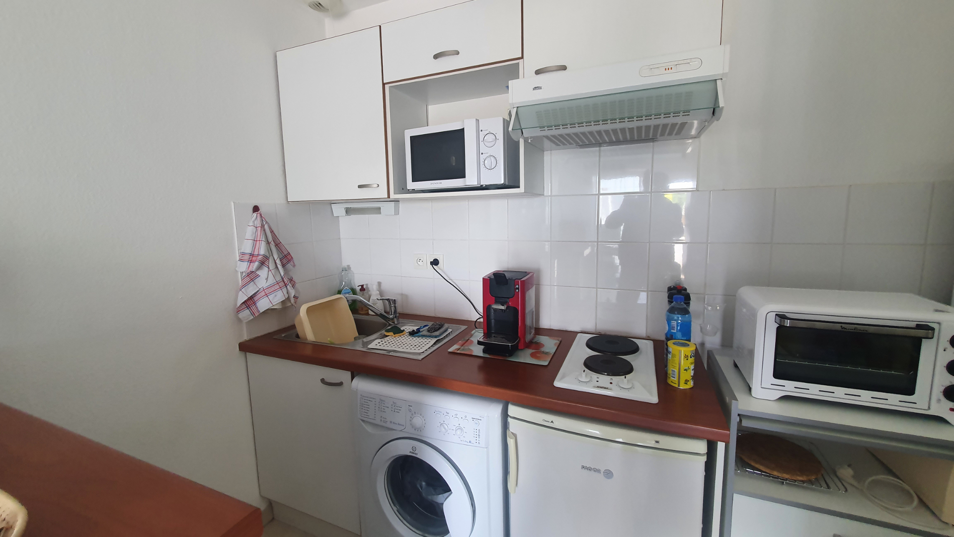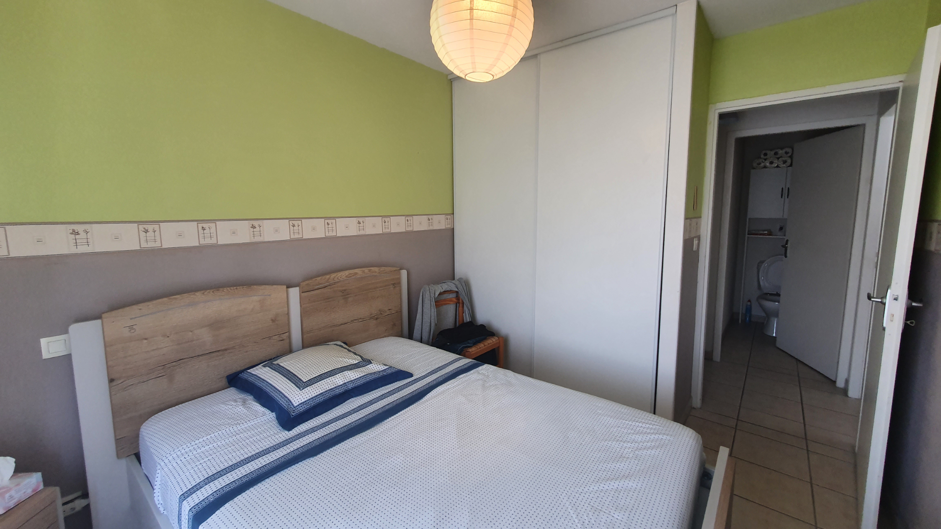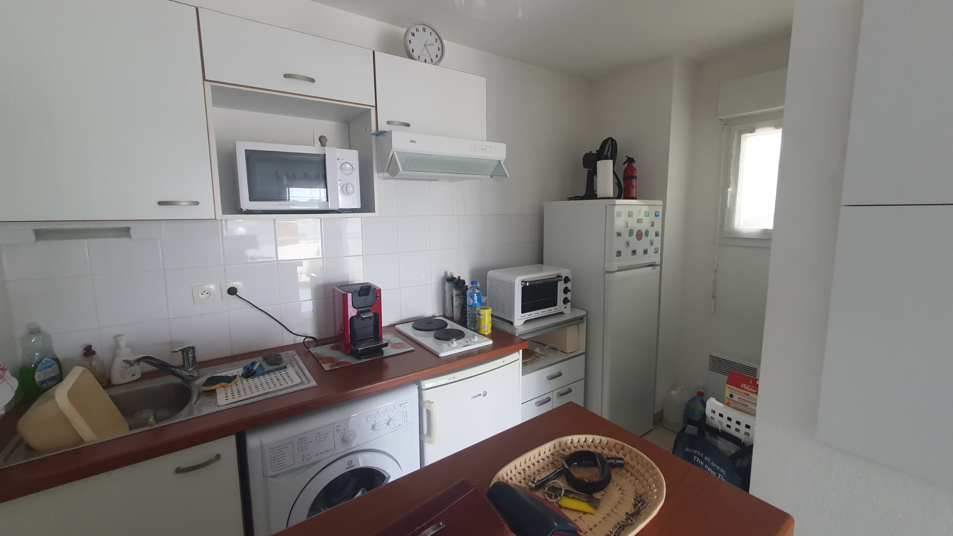 Un appartement au 1er étage d'une résidence composé d'un séjour avec cuisine à l'américaine, un dégagement, une chambre, un débarras, une salle de bain, un WC. Terrasse