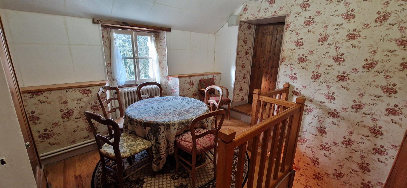 A l'étage : pièce palière, 3 chambres et grenier.