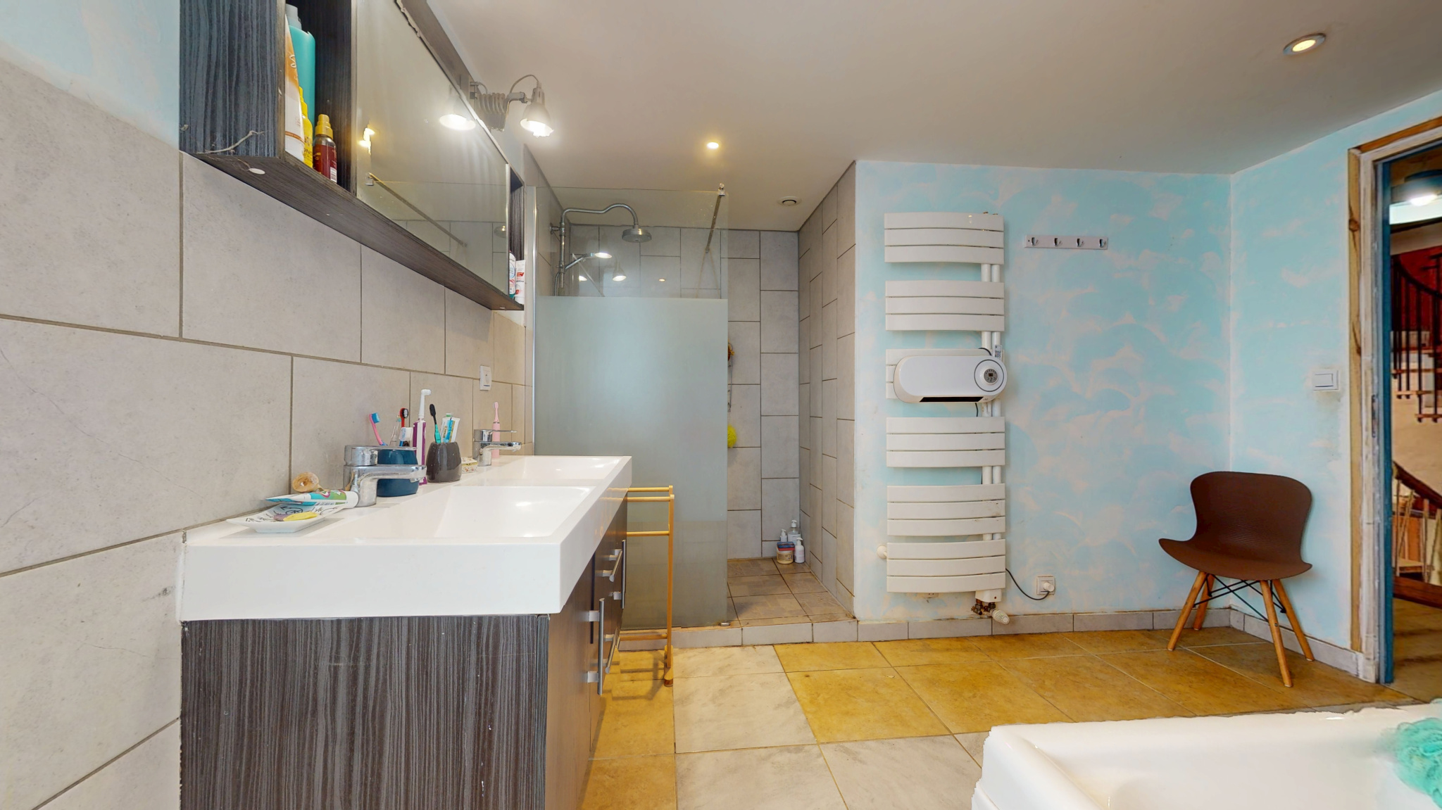 Au rez-de-chaussée, vous découvrirez une vaste pièce de vie de 92 m2, composée d'une cuisine aménagée et équipée ouverte sur un salon/séjour, une chaufferie/buanderie, un WC indépendant, une salle de bains ainsi que deux chambres.