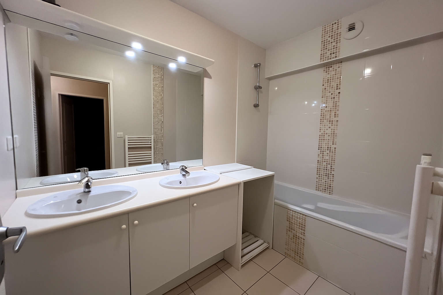 L'appartement comprend deux chambres avec placard intégré, une salle de bains, une buanderie, un WC séparé, une cave et un garage pour stocker vos affaires ou votre voiture en toute sécurité.