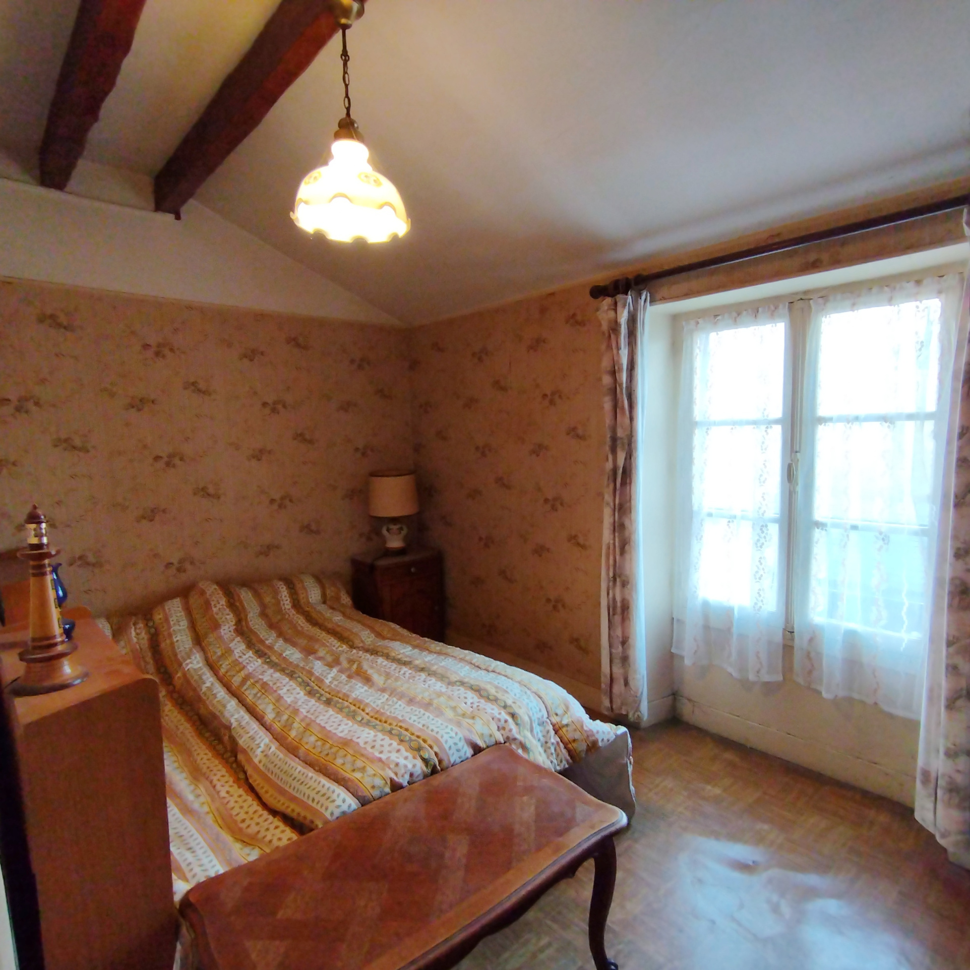 A l'étage : 2 chambres dont une de 23 m2 avec placards, une salle d'eau.