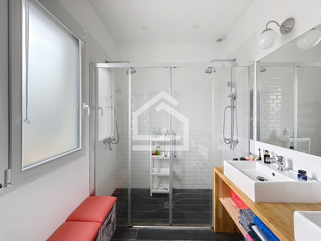Vous découvrirez une entrée avec placard, une belle pièce de vie lumineuse avec séjour et cuisine ouverte aménagée et équipée, une suite parentale avec dressing et salle d'eau, deux chambres complémentaires avec placard et une salle de bains avec baignoire, douche et double vasque.