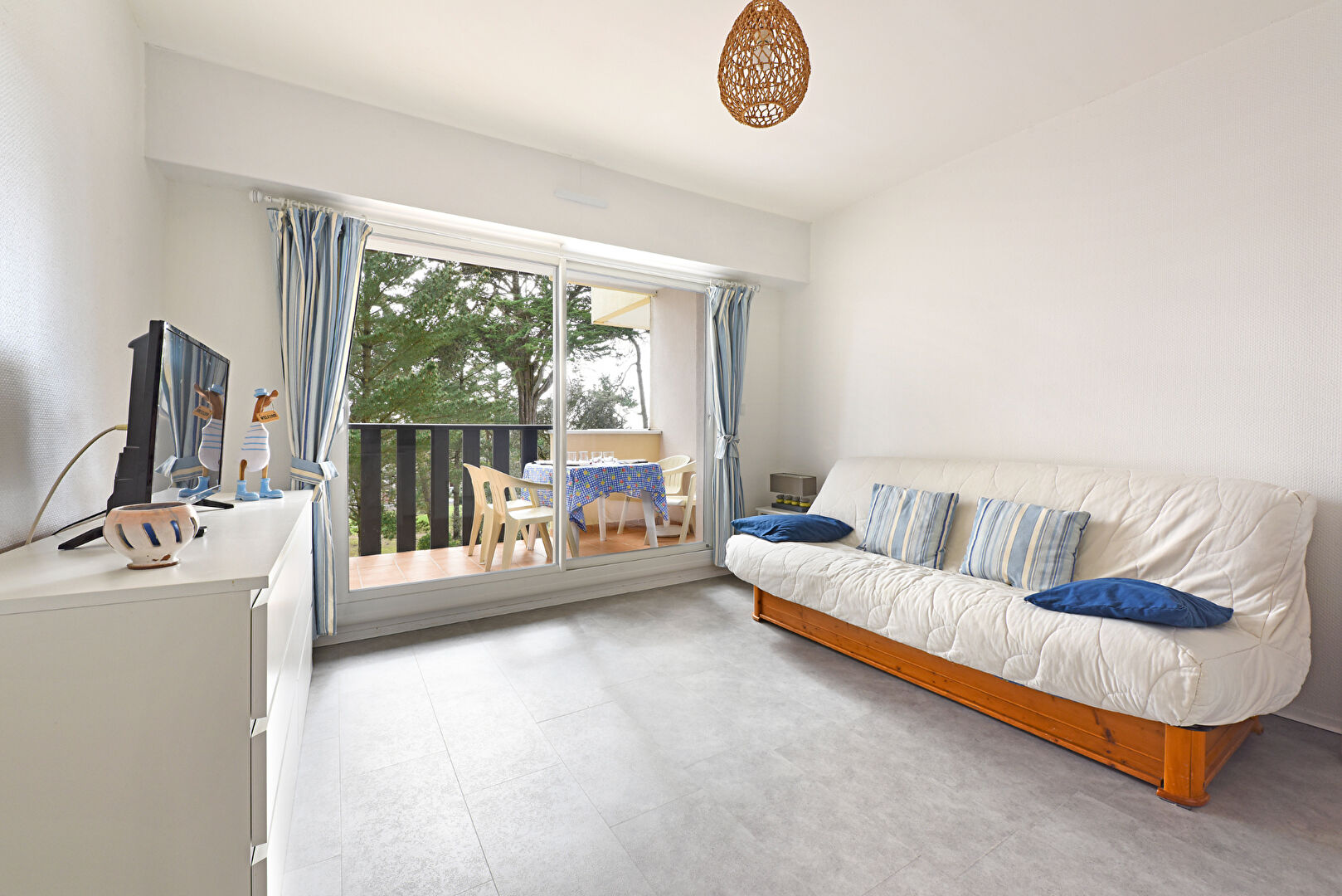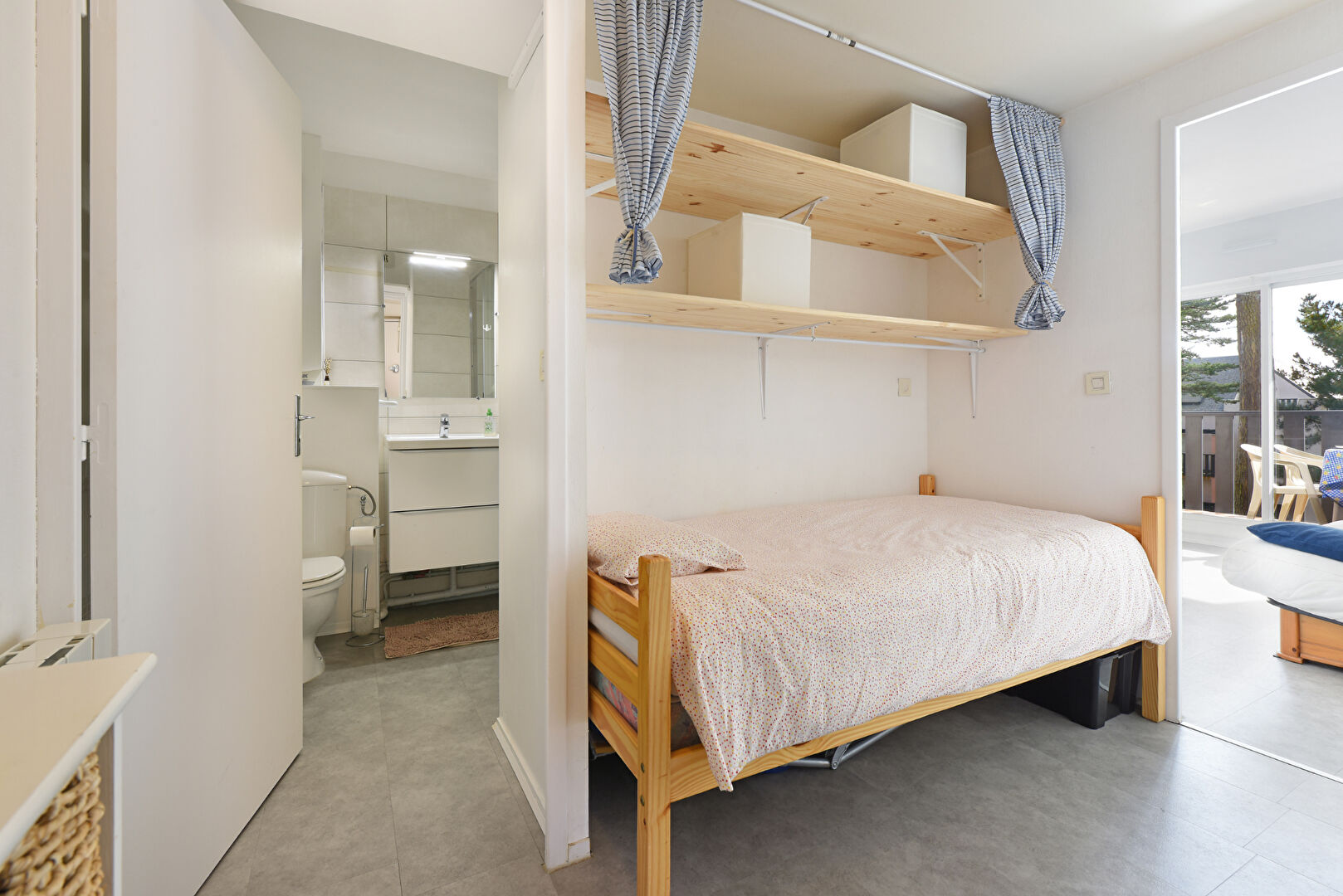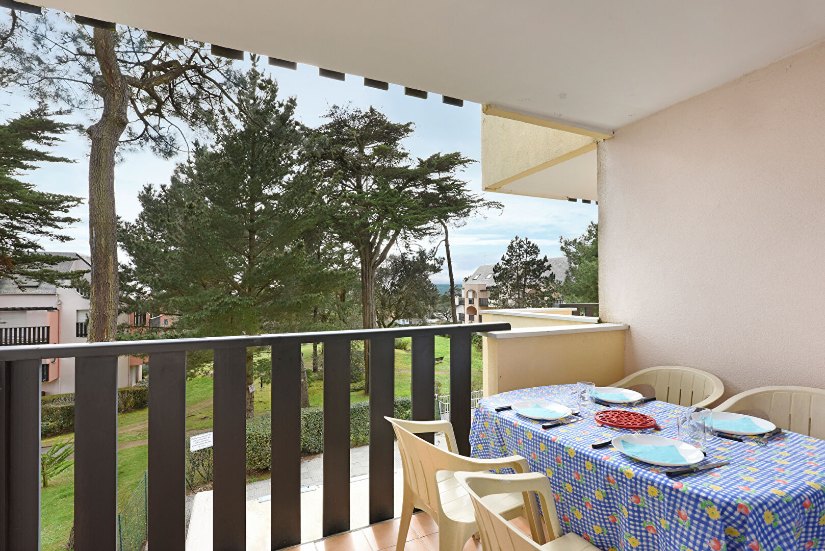 Charmant appartement entièrement rénové et entretenu, en excellent état, bénéficiant d'une belle exposition Sud, dans un environnement boisé et calme, à l'abri des vis à vis. La copropriété est à 10mn à pied de la plage, et offre l'avantage de très beaux espaces verts et d'une piscine commune. Entrée cabine, salle d'eau/wc en excellent état, pièce de vie avec kitchenette A/E se prolongeant sur le balcon. Ce bien est idéal pour vos escapades de bord de mer !