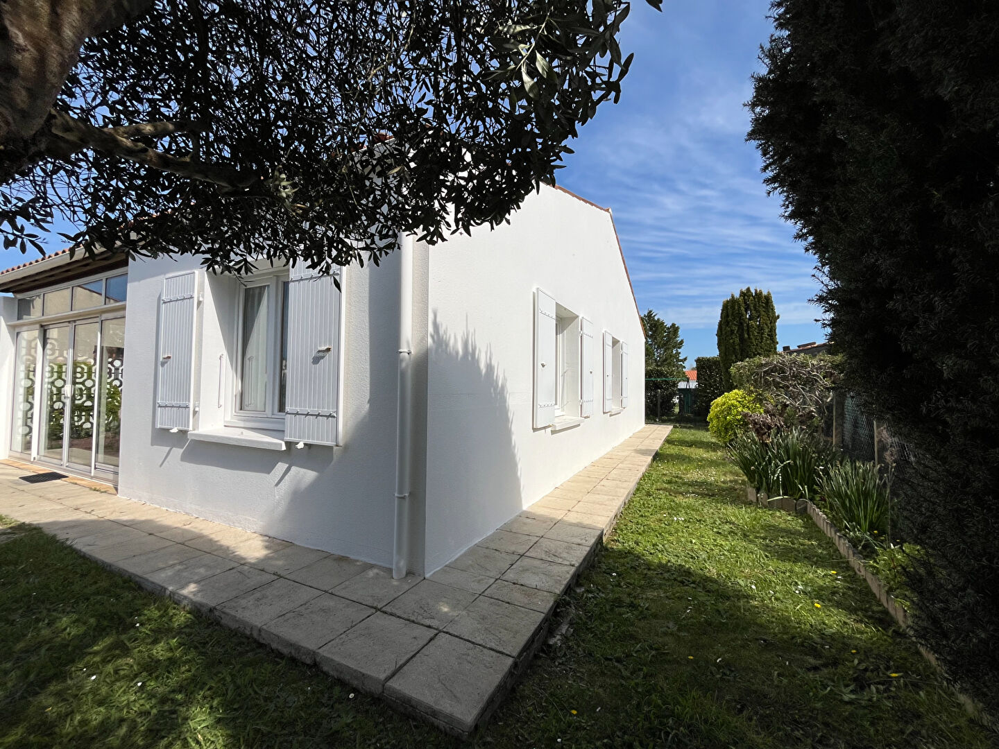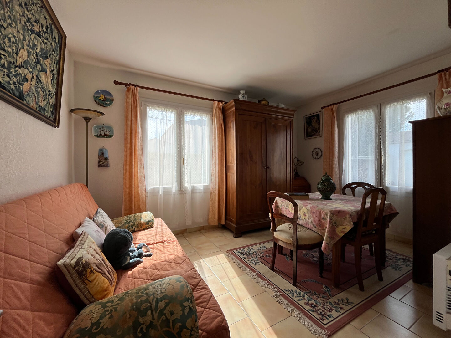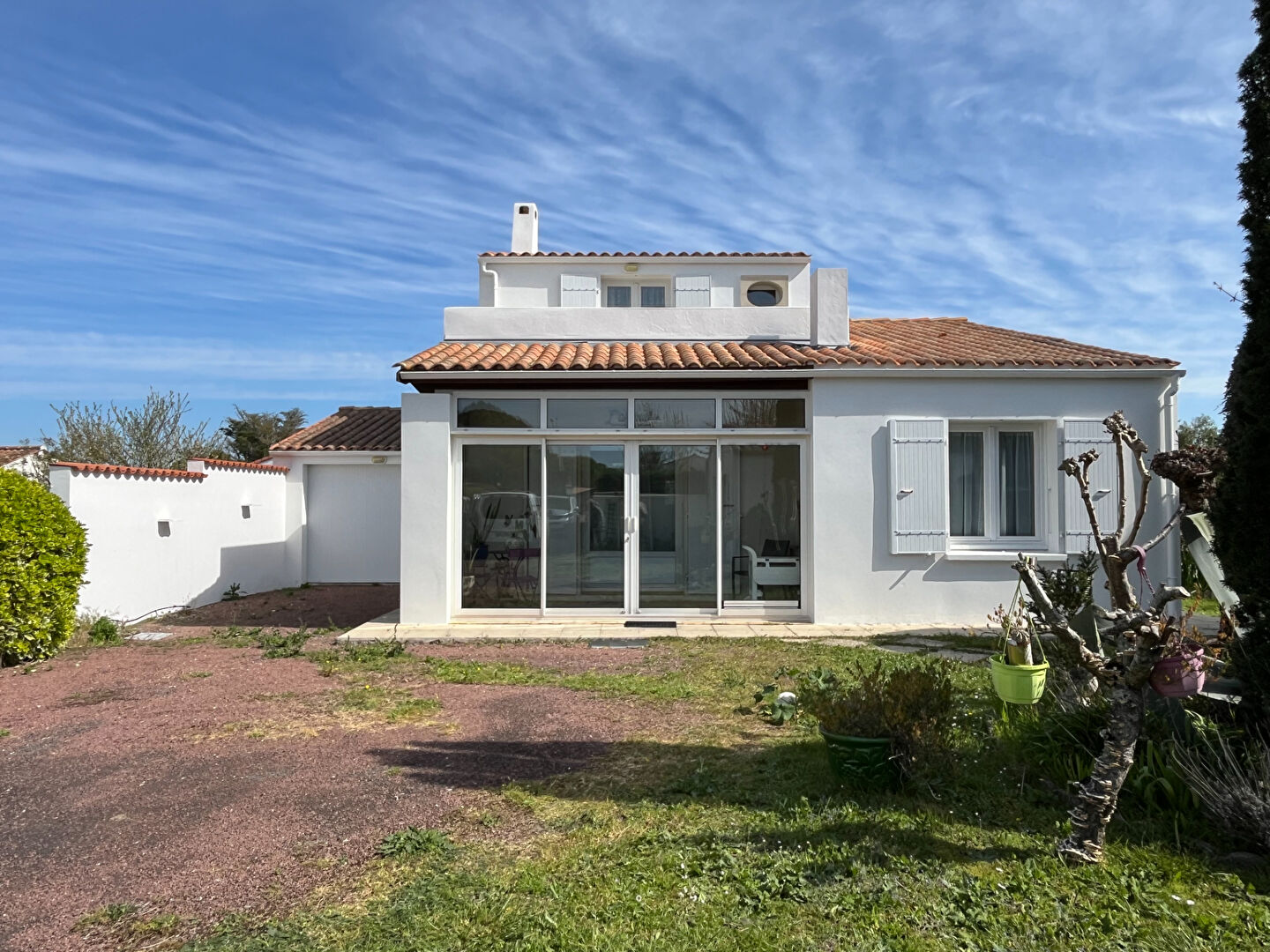 A 300 m. de la plage et du centre-bourg, 200 m. du marché, au calme, au fonds d'une impasse, sur une parcelle de 739 m², Villa d'habitation d'une surface habitable d'environ 110 m², comprenant: