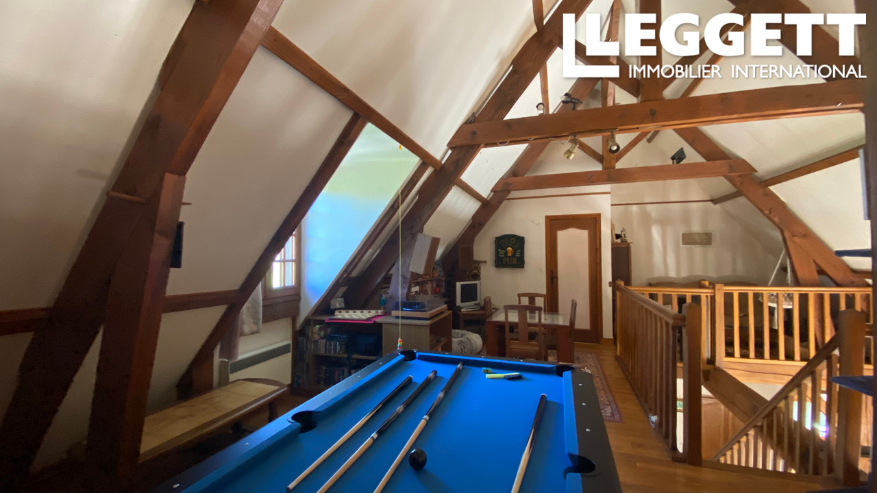 A35857JHC19 - La propriété a sa propre chemin d'entrée donnant à la maison, accessible par la terrasse. Grand salon en forme de L avec cheminée, cuisine avec l'entrée au sous-sol, deux chambres dont une avec coin lavabo, salle de bains avec lavabo et toilette, .L'étage (mezzanine) offre une salle de jeux, coin bureau, deux chambres et toilette avec vasque. Le sous sol est partiellement rénové en maison d'amis: il y a déjà une douche, toilette, porte-fenêtre donnant au jardin.