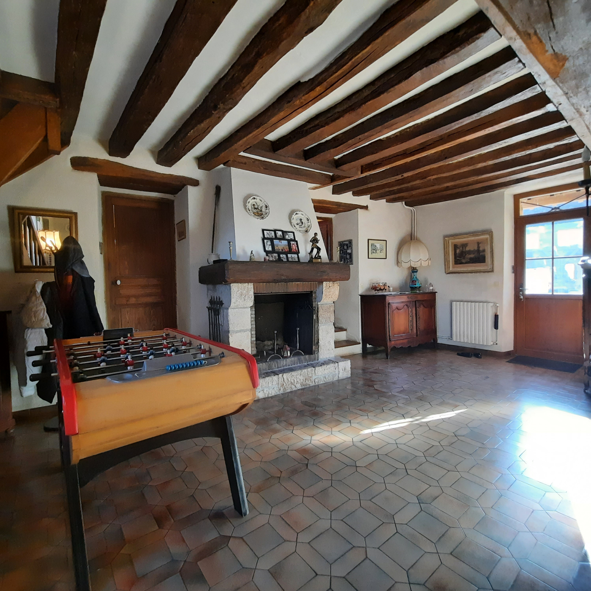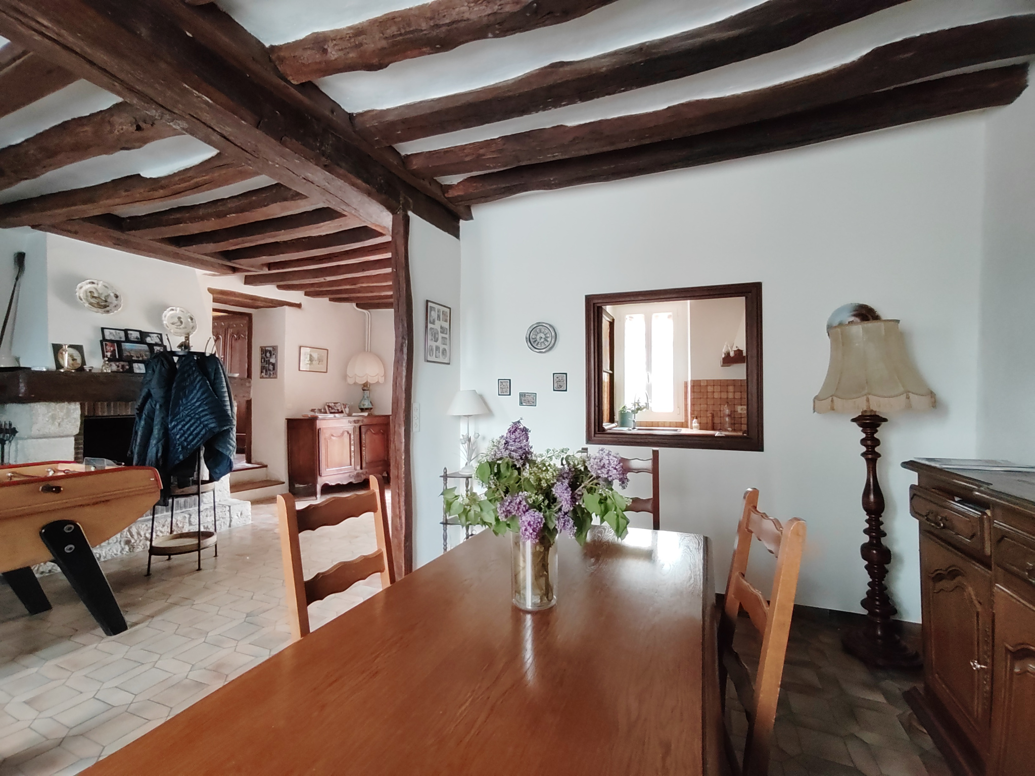 Au sein d'un village paisible situé au sud de Fontainebleau, beau corps de ferme composé de deux habitations et de plusieures granges. La maison principale d'une surface habitable de 208m2 comprend au rez de chaussée un séjour avec une grande cheminée, un grans salon traversant, une cuisine équipée pouvant facilement s'ouvrir sur le séjour, une salle d'eau, des toilettes et deux celliers. A la suite se trouve une buanderie avec un accès indépendant et un escalier menant au bureau et au grenier aménageable. A l'étage, un couloir dessert 4 chambres, une salle d'eau avec WC et un dressing. Une maison d'amis d'une surface de 55m2 complète ce bien, elle se compose au rez de chaussée d'un séjour donnant sur le jardin, une cuisine aménagée, une chambre et une salle d'eau avec WC. Deux granges et un auvent offrent beaucoup de possibilité d'aménagement.Terrain de 3.588m2 partagé entre une belle cour arborée et un agéable jardin. A 5 minutes d'un village avec gare, commerces et accès autoroute.