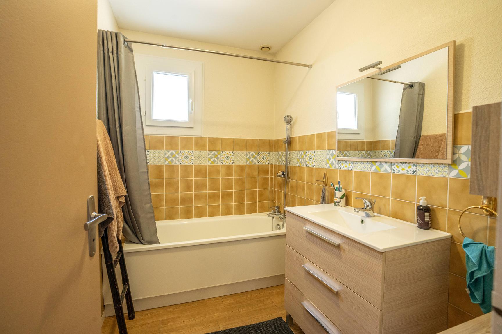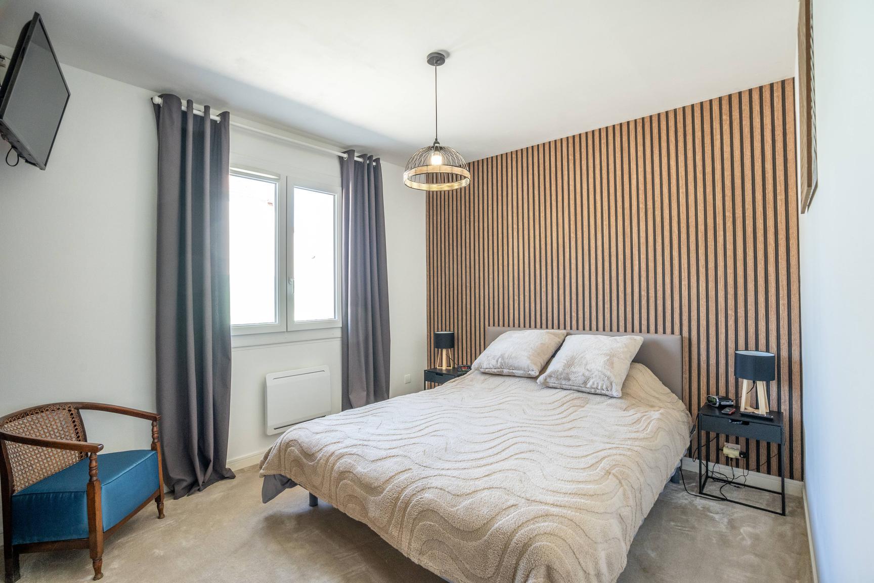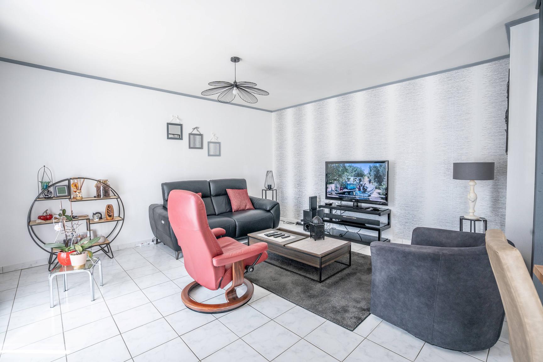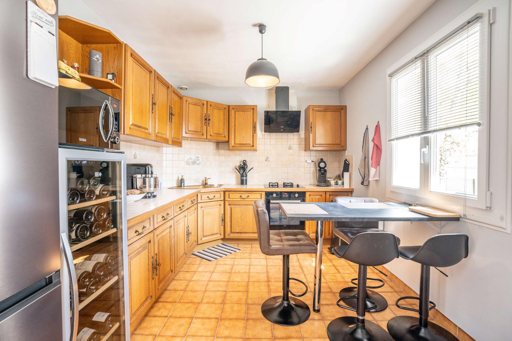M 4683 - Agglomération, Belle maison d'environ 105 m² comprenant au rez-de-chaussée : une entrée avec placard, une cuisine équipée, un salon / salle à manger, deux chambres, une salle de bains, un WC, douche et un espace bureau. À l'étage, une chambre, un WC et un espace rangement. Garage. Chauffage électrique. Terrain d'une superficie de 1172 m².