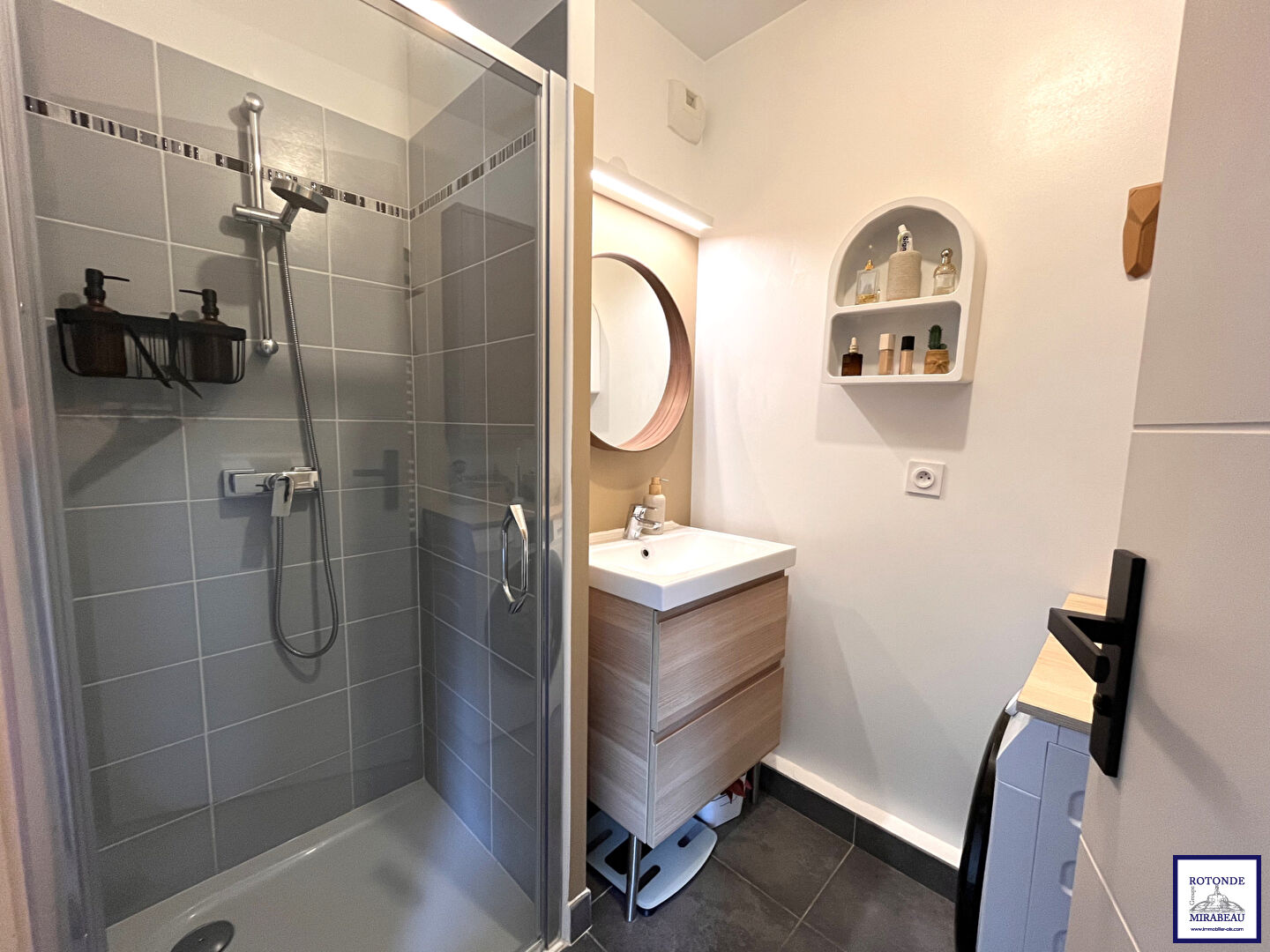 Il se compose d'une entrée avec placards/penderie (beaucoup de rangements), d'un salon avec cuisine américaine aménagée exposés Sud, une chambre avec un coin bureau et rangements, d'une salle d'eau moderne et de toilettes séparées.