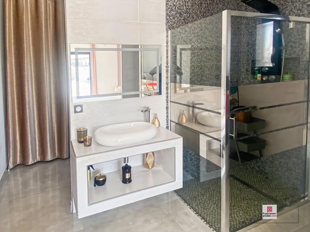 - Double salon : Spacieux et lumineux, doté d'une belle hauteur sous plafond, il offre une vue imprenable sur l'espace piscine côté cuisine ouverte et d'une vue dégagée coté salon, créant une harmonie parfaite entre intérieur et extérieur.