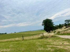 A SAISIR, au calme terrain d'une surface de 91 a 20 ca, légèrement en retrait du village avec une vue imprenable et une ancienne ferme à rénover complètement