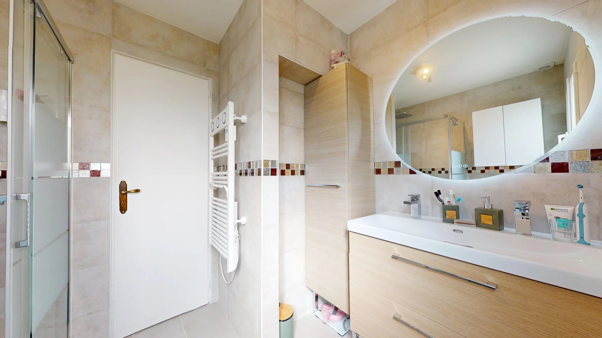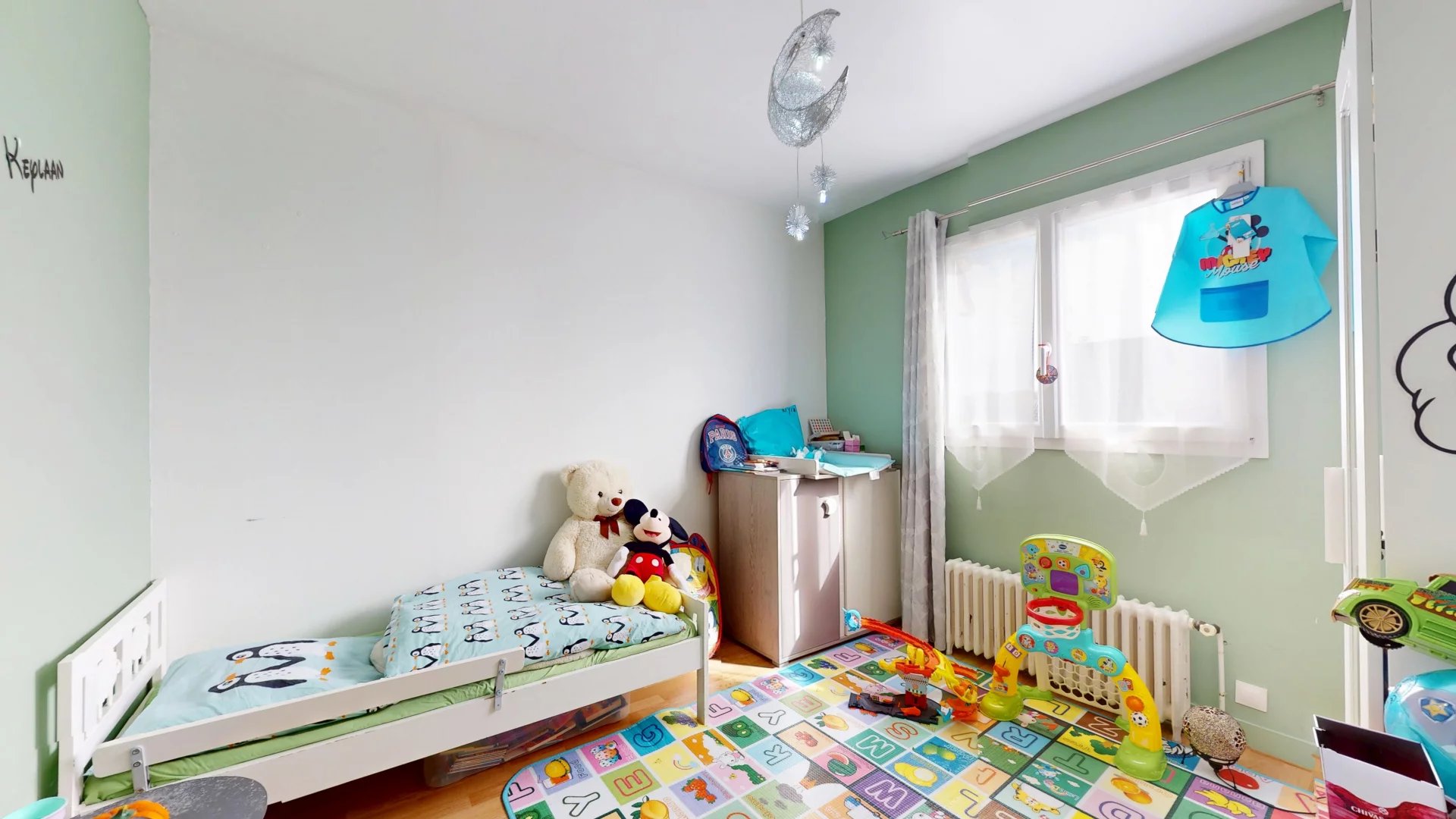 À l’étage, une belle salle de jeux centrale distribue trois chambres, dont l’une avec accès à une véranda permettant de rejoindre directement le jardin, une salle d’eau, ainsi qu’un second WC.