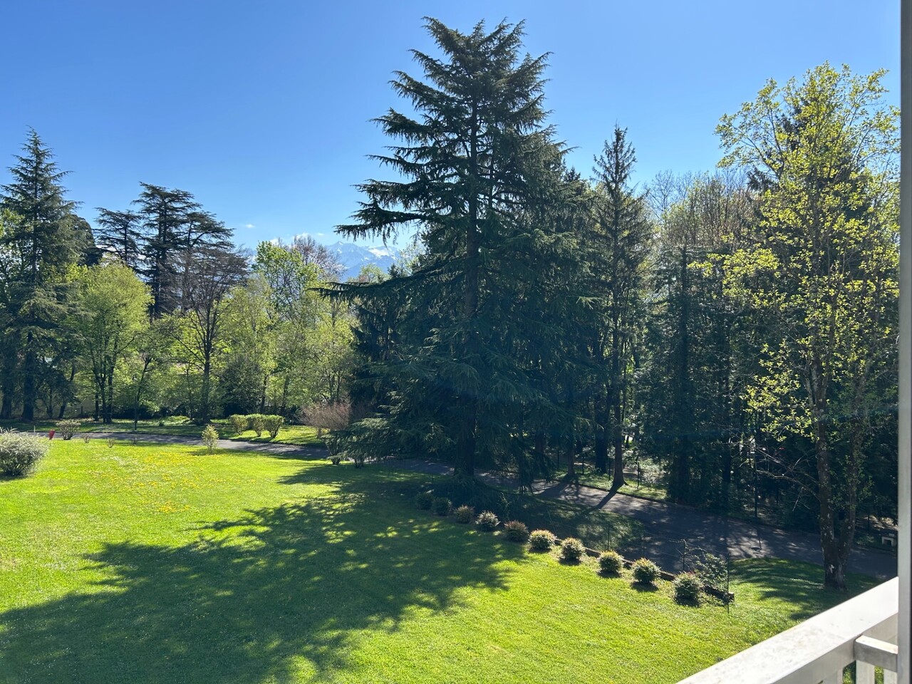 A VENDRE - Au cœur de la Résidence SAINT MURY de MEYLAN, réputée pour son beau parc fleuri et arboré, sa piscine et ses courts de tennis : magnifique appartement de 140 m² au 2ème étage avec ascenseur - Hall d'entrée avec toilettes invités - Elégant salon de 45 m² avec double exposition et de généreuses baies vitrées donnant sur un balcon filant de 56 m²( qui profite à l'ensemble des pièces de ce bien) - Chacune des pièces offre ainsi de belles vues sur le Parc privé de la copropriété et au delà sur les massifs montagneux - La cuisine de 10 m², à moderniser, est précédée d'un pertinent cellier et elle est également dotée d'un accès direct au balcon -Cet appartement compte trois chambres : Une grande chambre parentale de 31 m² avec rangements - Une chambre avec cabinet de toilette - Une chambre, actuellement dédiée à un bureau contigu au séjour - Une salle de bains - Appartement fonctionnel comptant de nombreux placards, penderies et divers rangements - Possibilité d'acquérir un garage de 24 m² avec lumière et prise électrique proche de l'immeuble - Un studio indépendant en rez de jardin avec très jolie vue sur le Parc est également disponible en plus du prix - Tous ces lots sont soumis au régime de copropriété - 260 lots - Charges courantes annuelles de 7 029.47 € /an, incluant : le chauffage, eaux froide et chaude, gardien et entretien de la copropriété offrant piscine et tennis - Bien recherché rare à la vente - Travaux de rafraîchissement à prévoir - Excellente situation au calme et proches des commodités et du Lycée du GRESIVAUDAN - MEYLAN - 500 000 € -