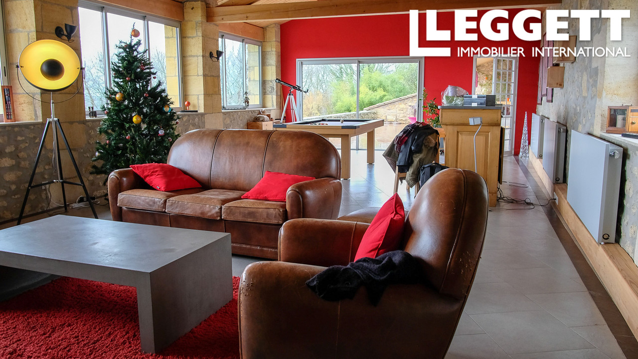 A36368MK33 - Dans la belle région vallonnée de l'ENTRE-DEUX-MERS, proche de SAINT-EMILION ni loin de BORDEAUX, bien caché de tous les regards ou autres nuisances , vous découvrez cet bel ensemble de deux maisons liées par un passage qui donne sur une terrasse avec vue panoramique, orientée plein sud! En contre-bas une belle piscine avec vue sur la forêt! Aucun obstacle, aucune route, aucun voisin vous dérange! Bref, un emplacement parfait pour des amateurs du silence et de la nature !