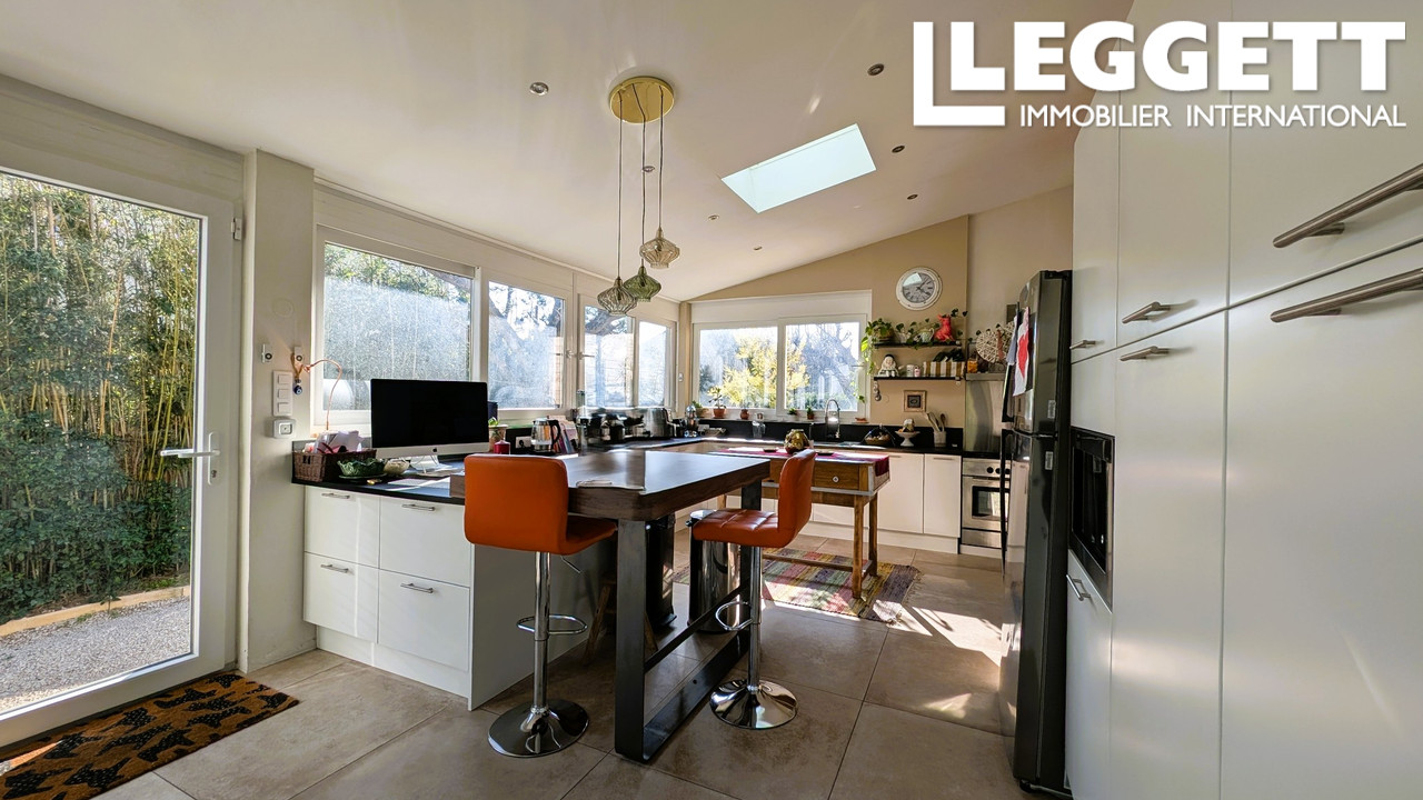 o Cuisine équipée / salle à manger de 35 m², baignée de lumière grâce à ses larges baies vitrées, chaleureuse et conviviale avec son joli poêle à bois