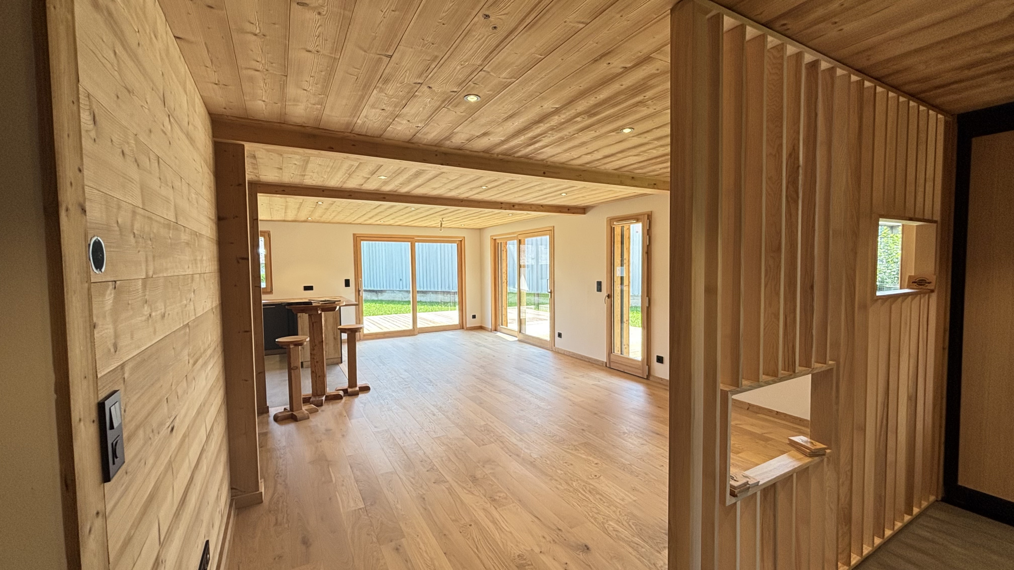 Construit par des artisants locaux, ce chalet de 107m2 est entièrement construit avec de matériaux de qualité telle que le chêne et le mélèze étuvé.