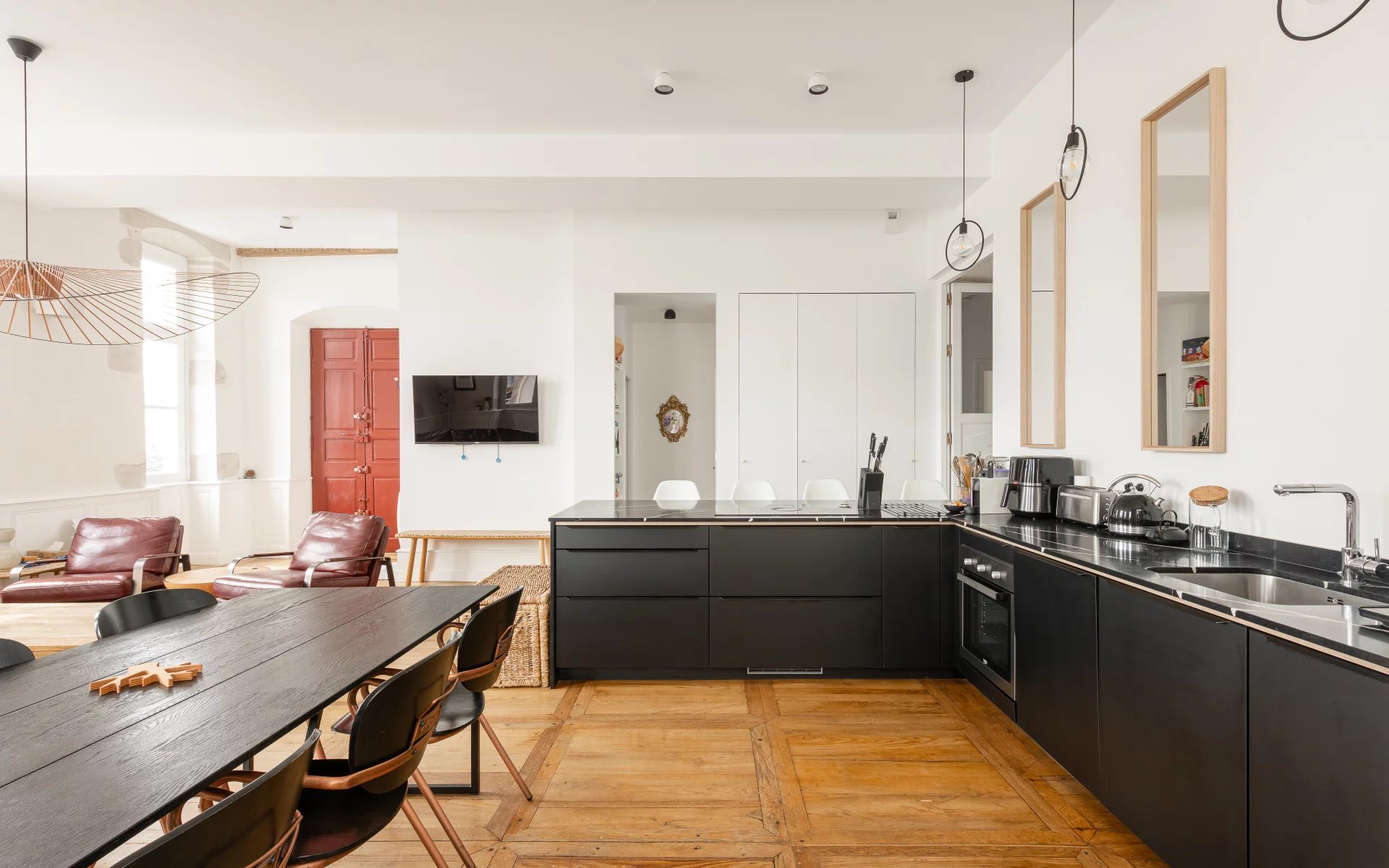 Les planchers d'origine et la hauteur sous plafond ajoutent une touche d'élégance et de caractère à cet appartement. faisant de chaque pièce un lieu unique.
